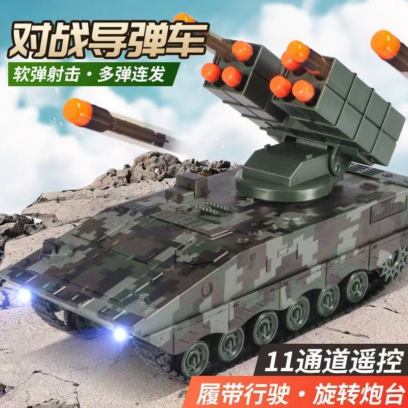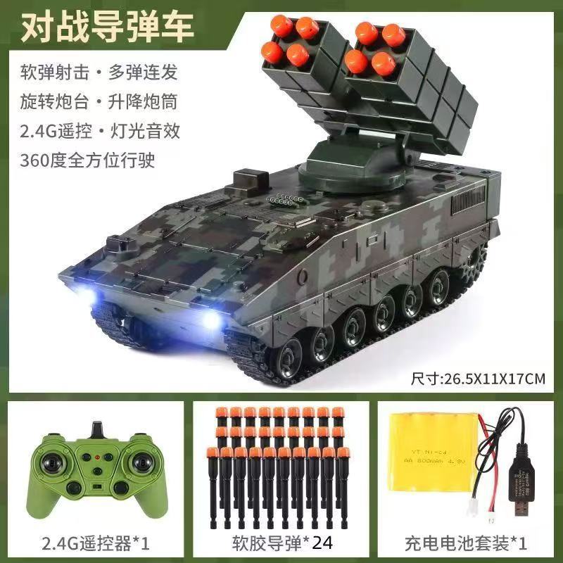 仿真可发射遥控导弹车履带坦克儿童玩具车超大号电动可充电遥控车