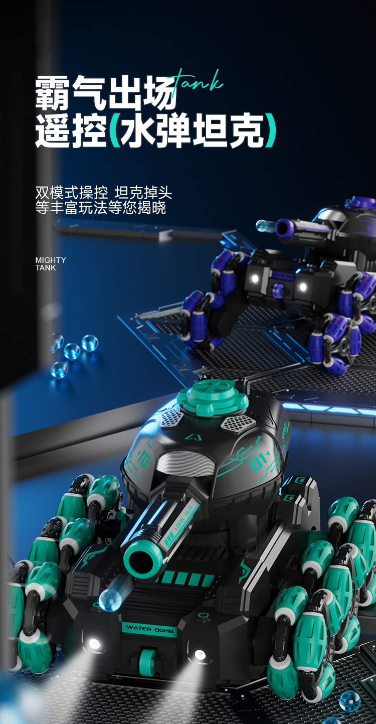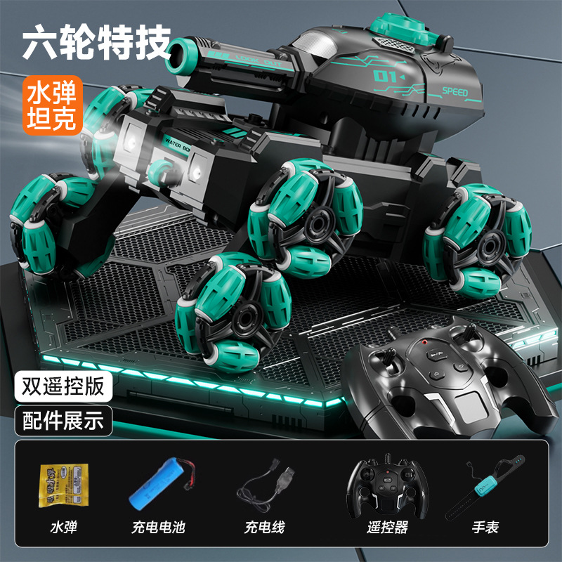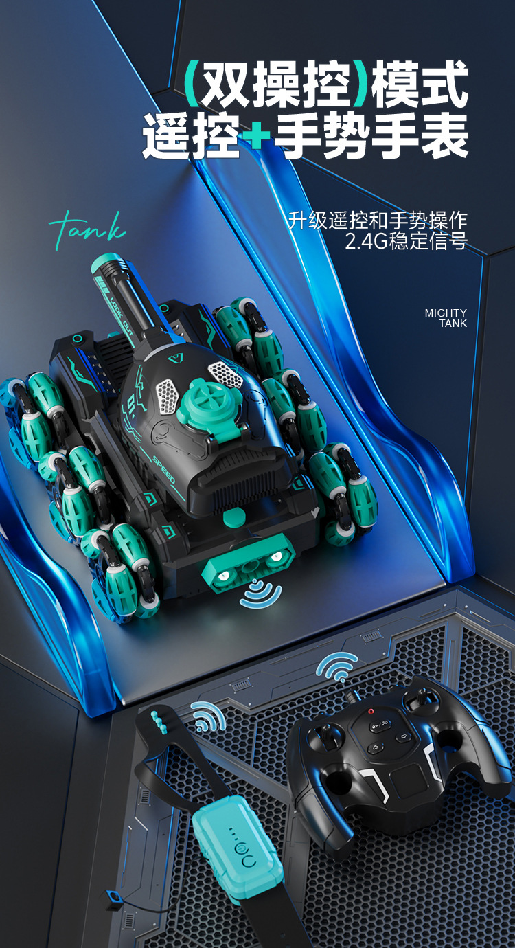 跨境新款六轮水弹坦克战车玩具可发射水弹手势感应男孩遥控越野车
