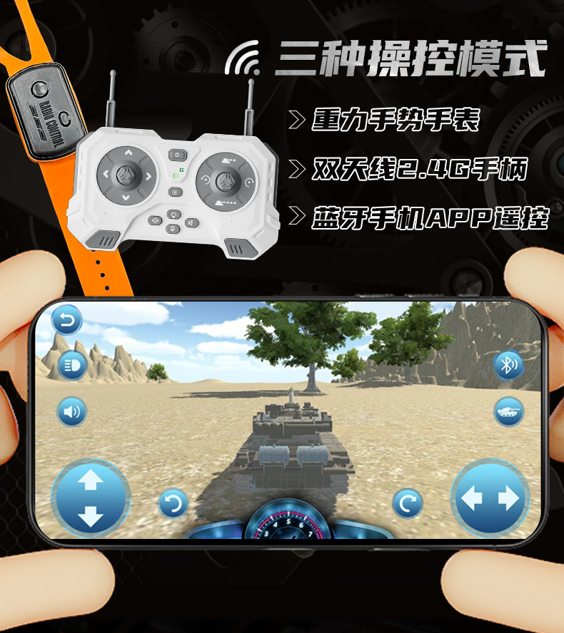 - 【礼盒】水弹声光13通T90金属银】手机遥控+手柄+手表