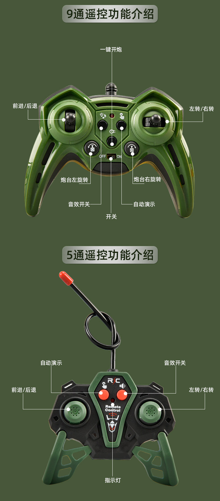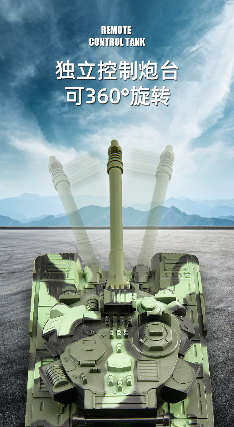 10通遥控坦克迷彩绿(2.4G,炮台遥控旋转)
