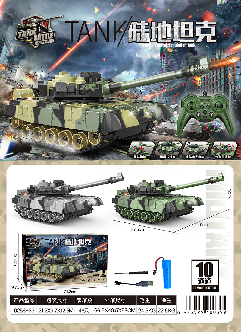 10通遥控坦克迷彩灰(2.4G,炮台遥控旋转)