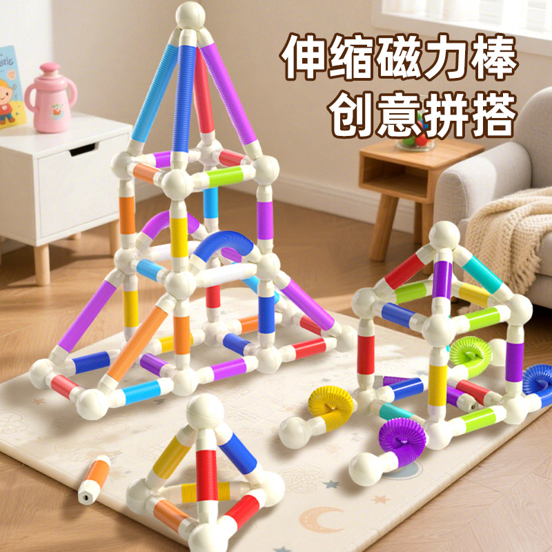 百变磁力拉伸式磁力儿童益智拼装启蒙玩具男女孩早教伸拉磁力玩具