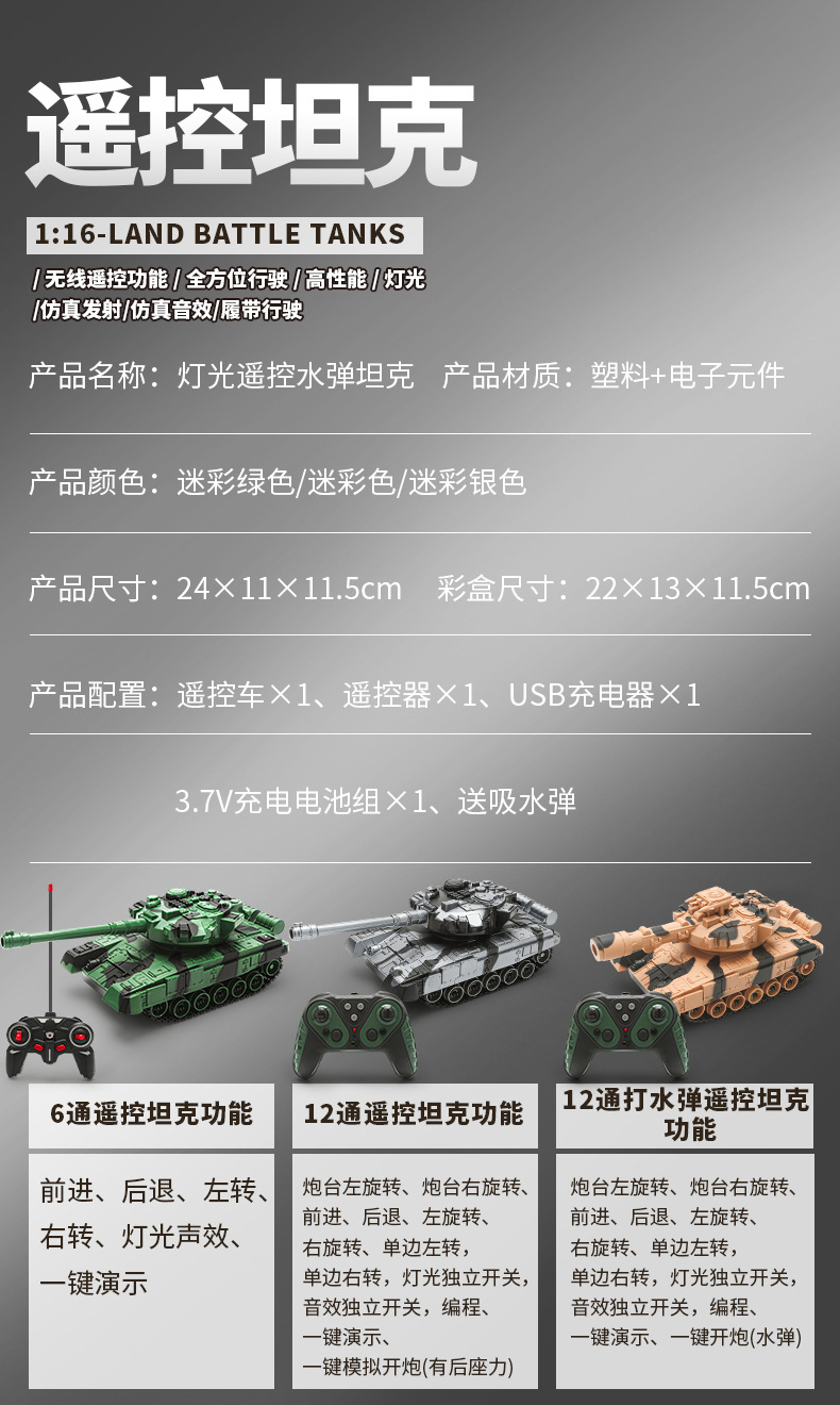 遥控坦克玩具车2.4G可开炮发射水弹履带式电动仿真益智玩具男孩
