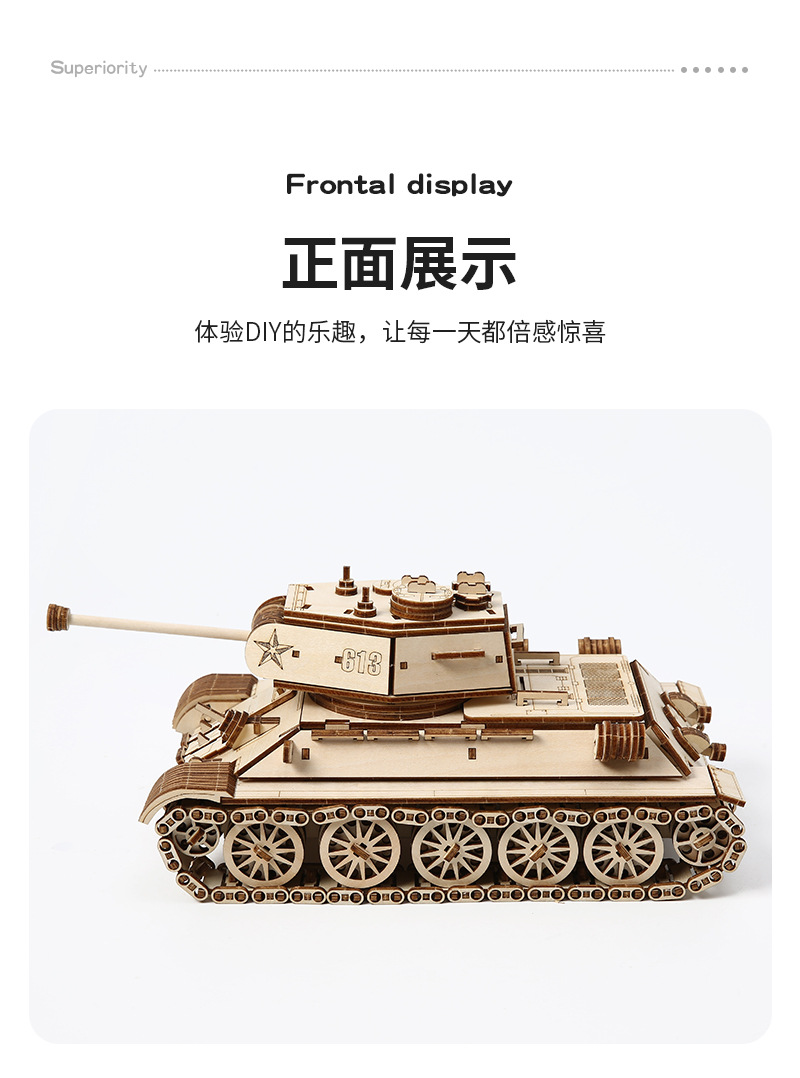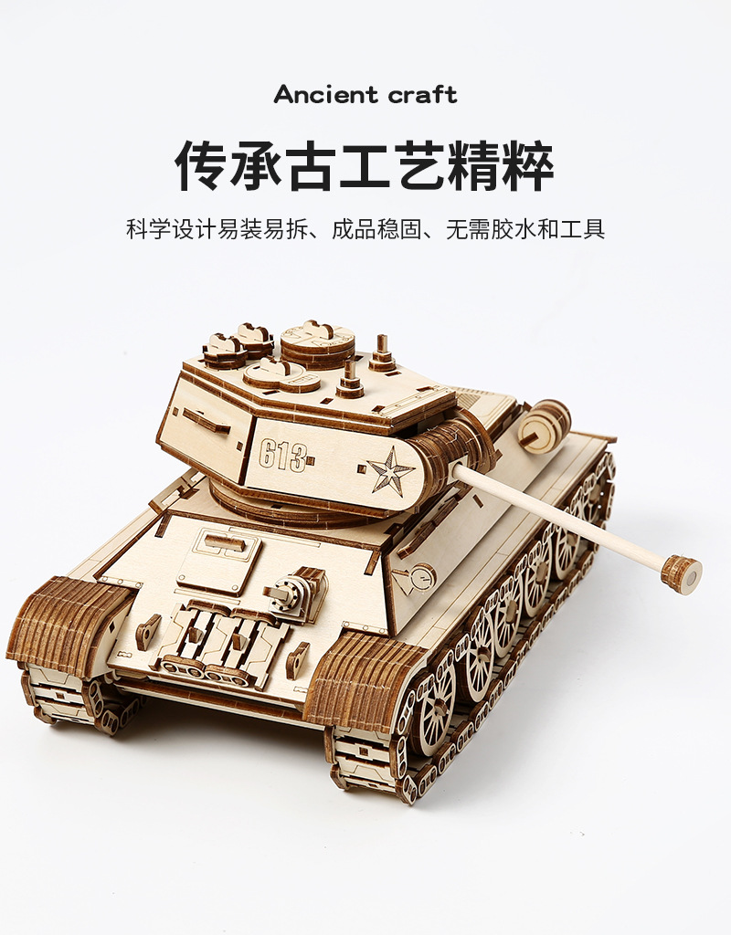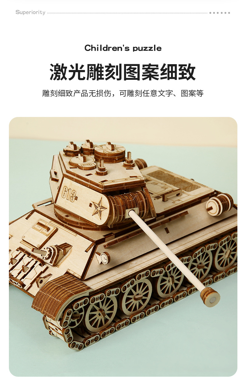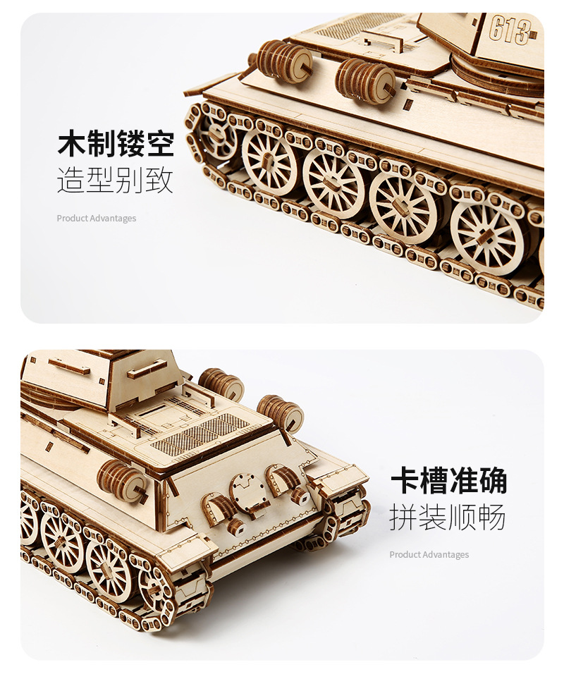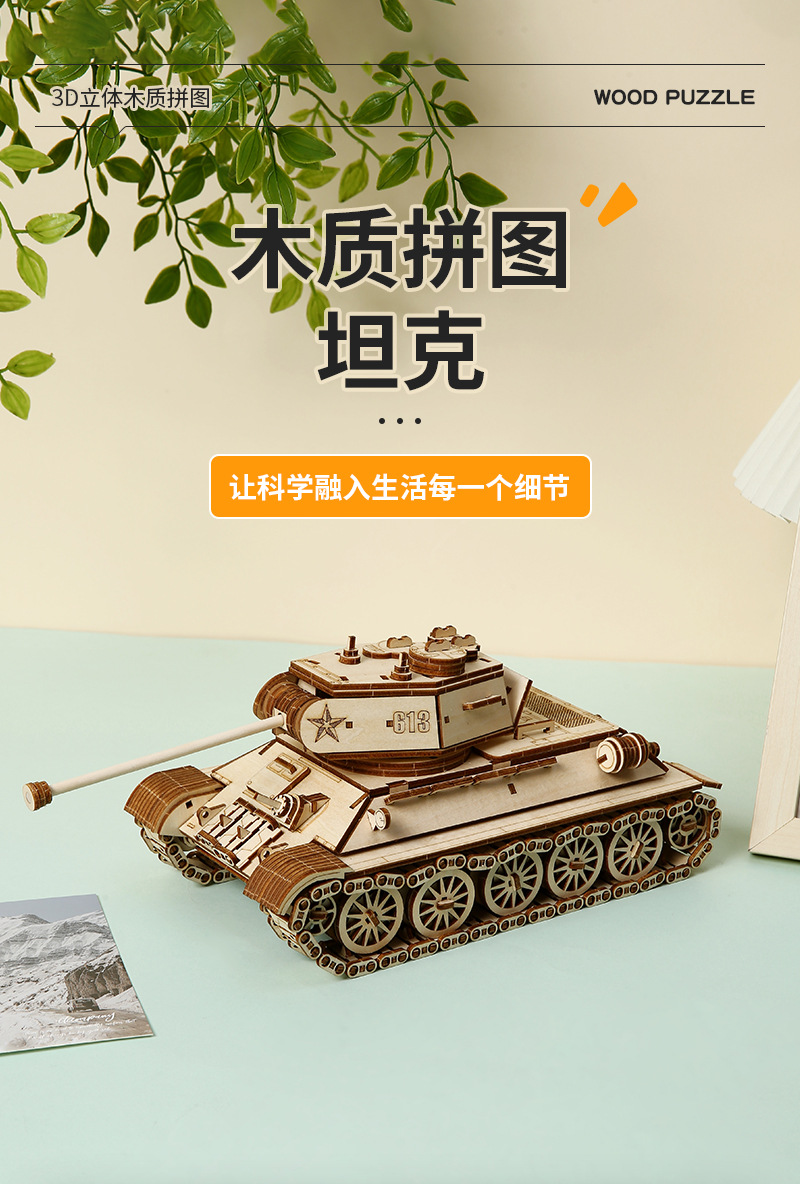 新品坦克木质拼装仿真玩具3D立体拼图玩具模型拼插益智玩具