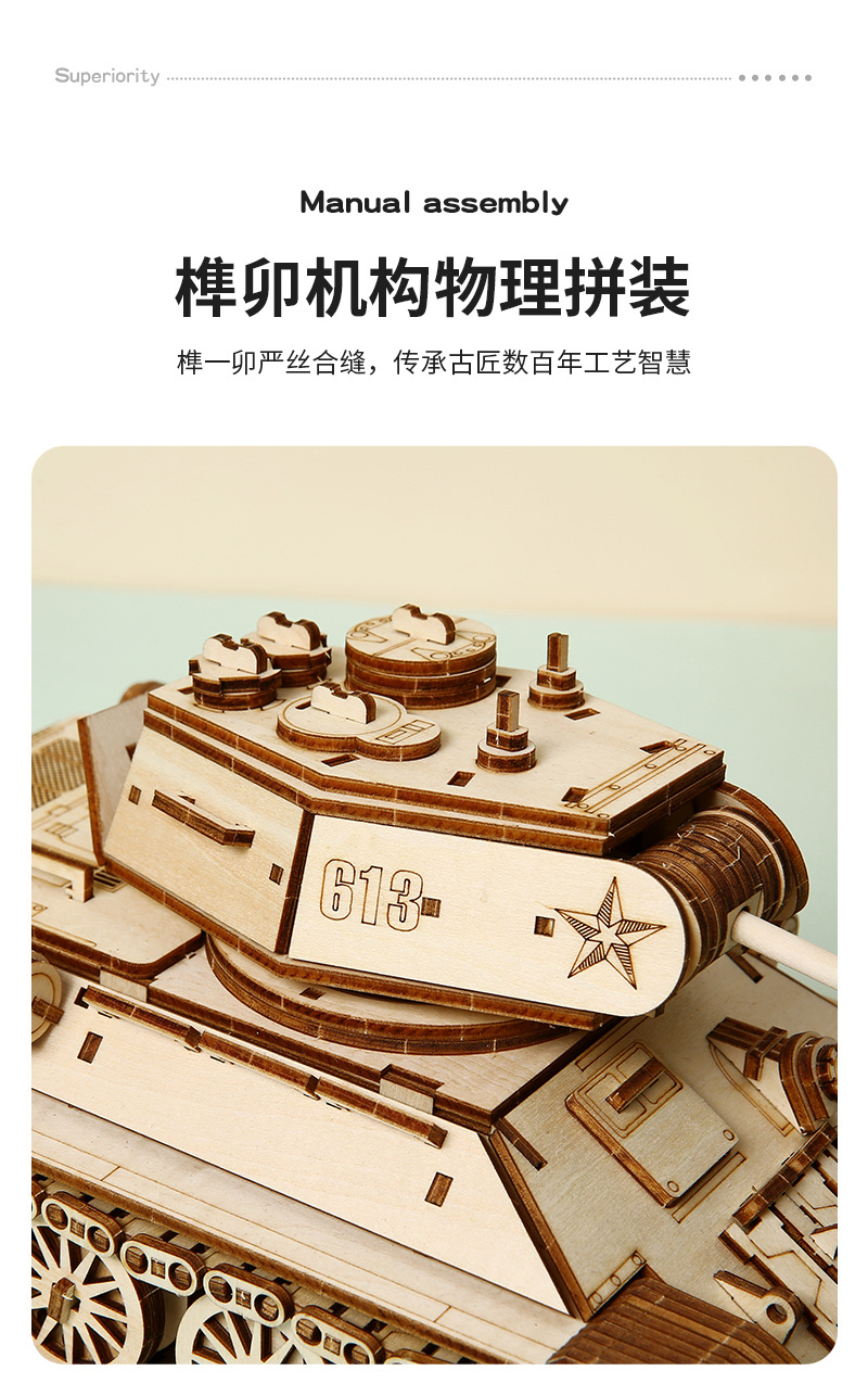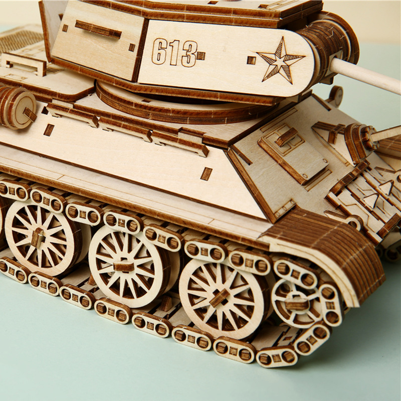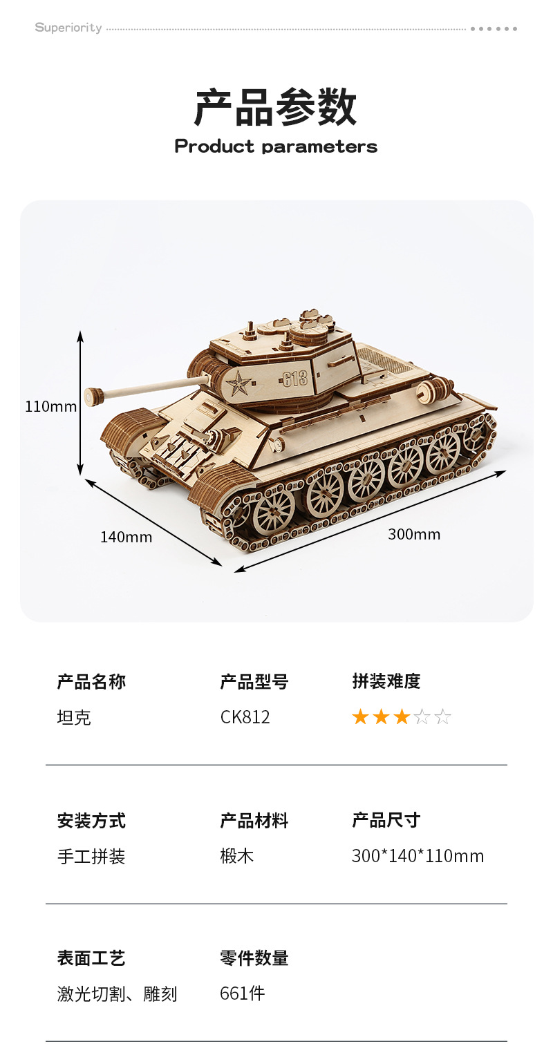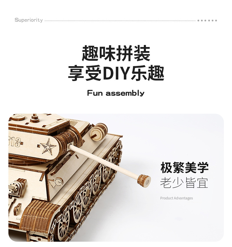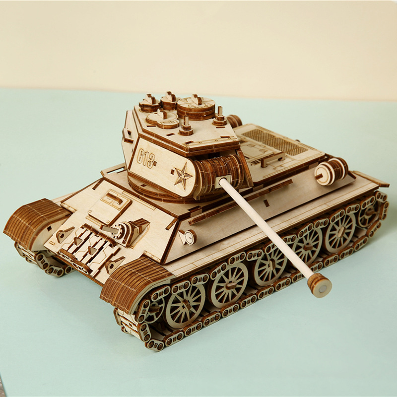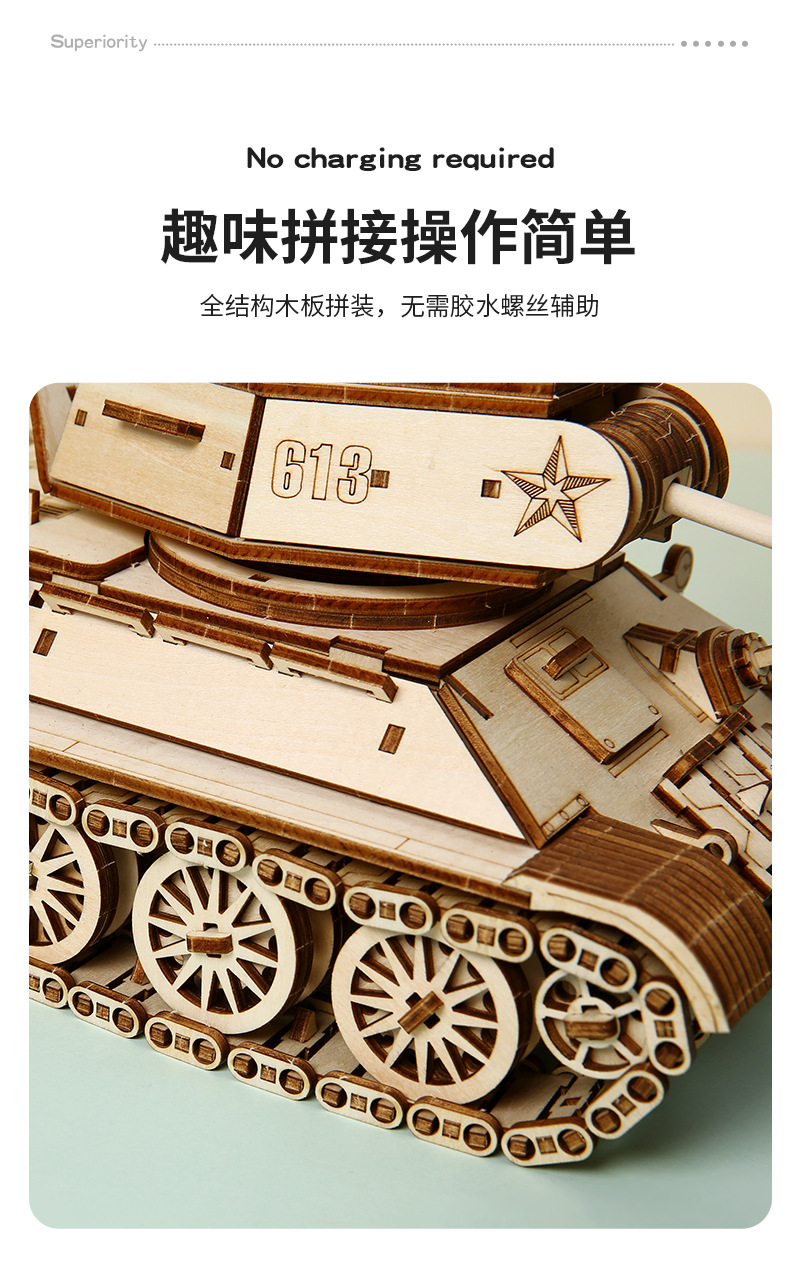 新品坦克木质拼装仿真玩具3D立体拼图玩具模型拼插益智玩具