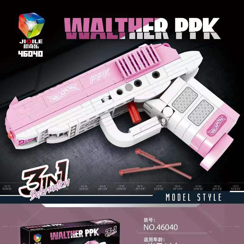 - 粉色PPK手枪【三种造型送子弹可发射】38厘米彩盒装