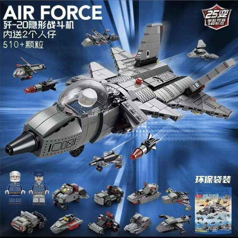 - 25变歼20隐形战斗机510颗粒【彩袋】
