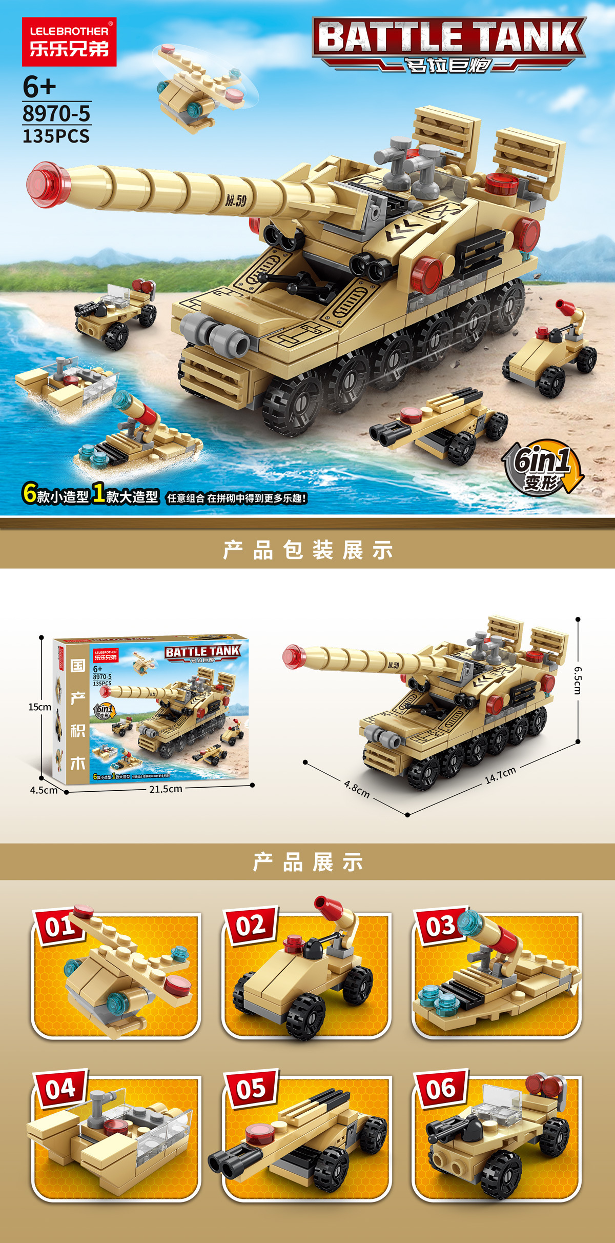 - 拖头导弹车六合一135PCS【彩盒装】