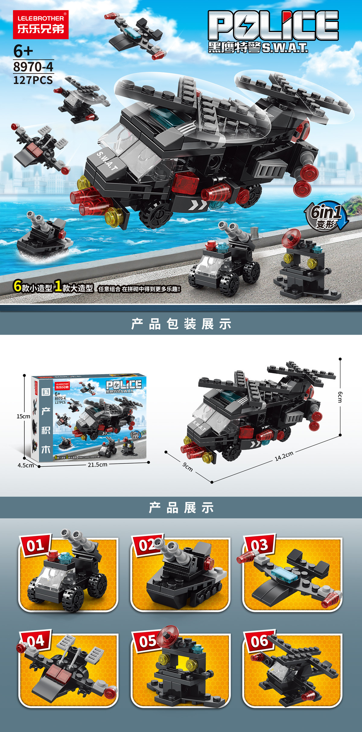 - 特警直升机六合一127PCS【彩盒装】