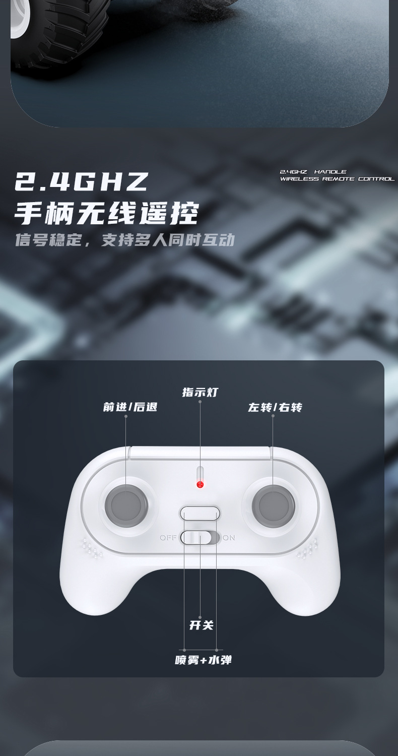 新品大号灯光喷雾水弹坦克车二合一遥控越野山地攀爬车儿童玩具