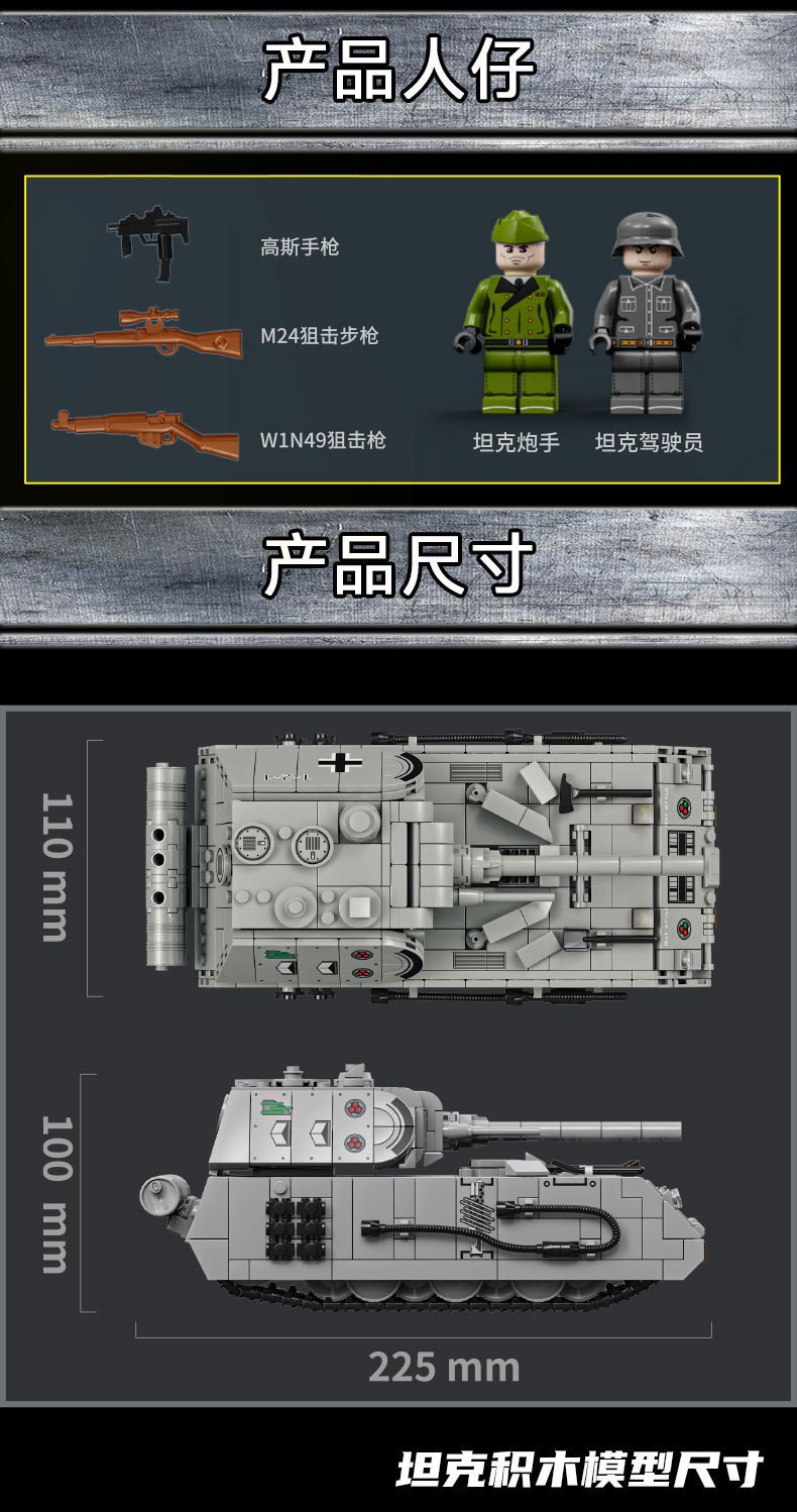 二战军事德国鼠式坦克积木M1装甲车兼容乐高男孩拼装玩具机构礼物