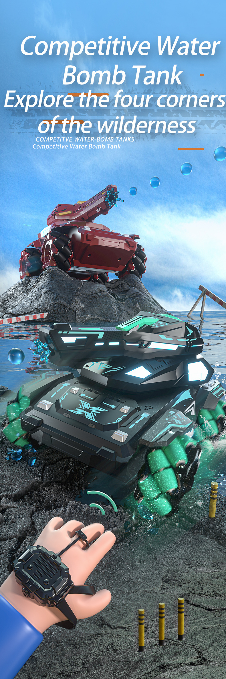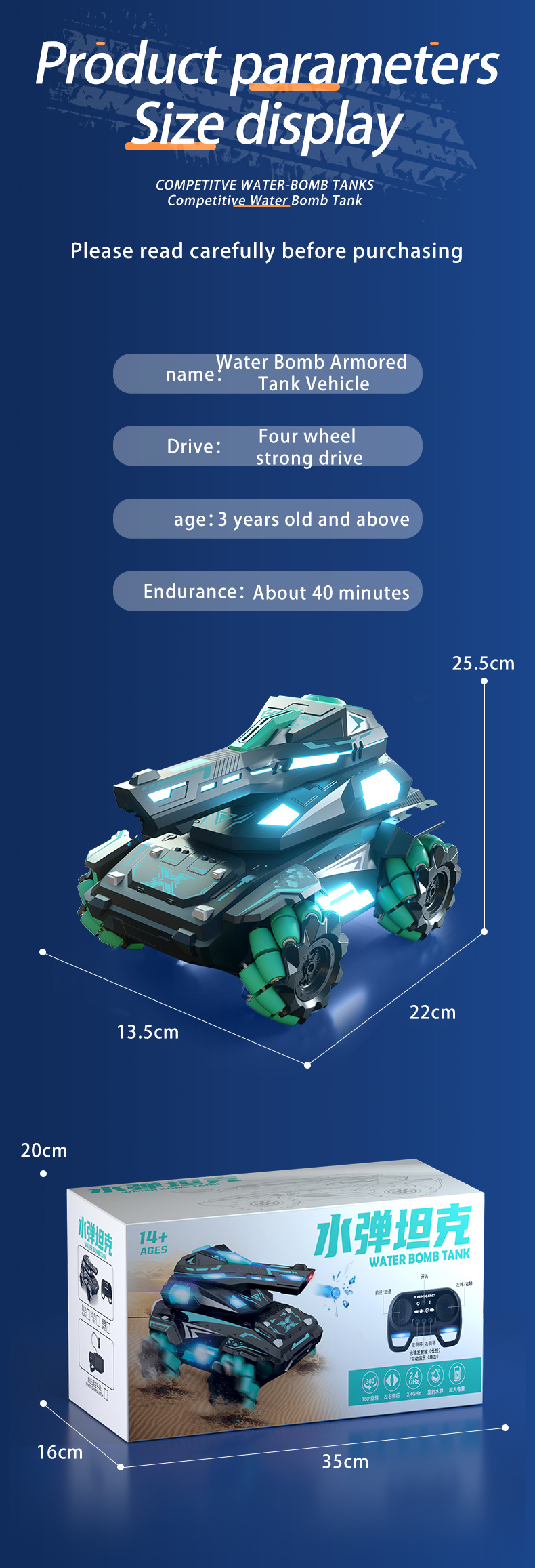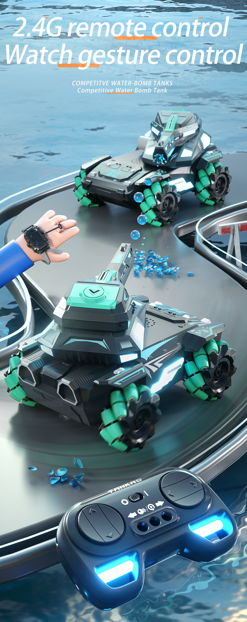 跨境RC遥控装甲特技水弹坦克战车模型儿童玩具遥控车