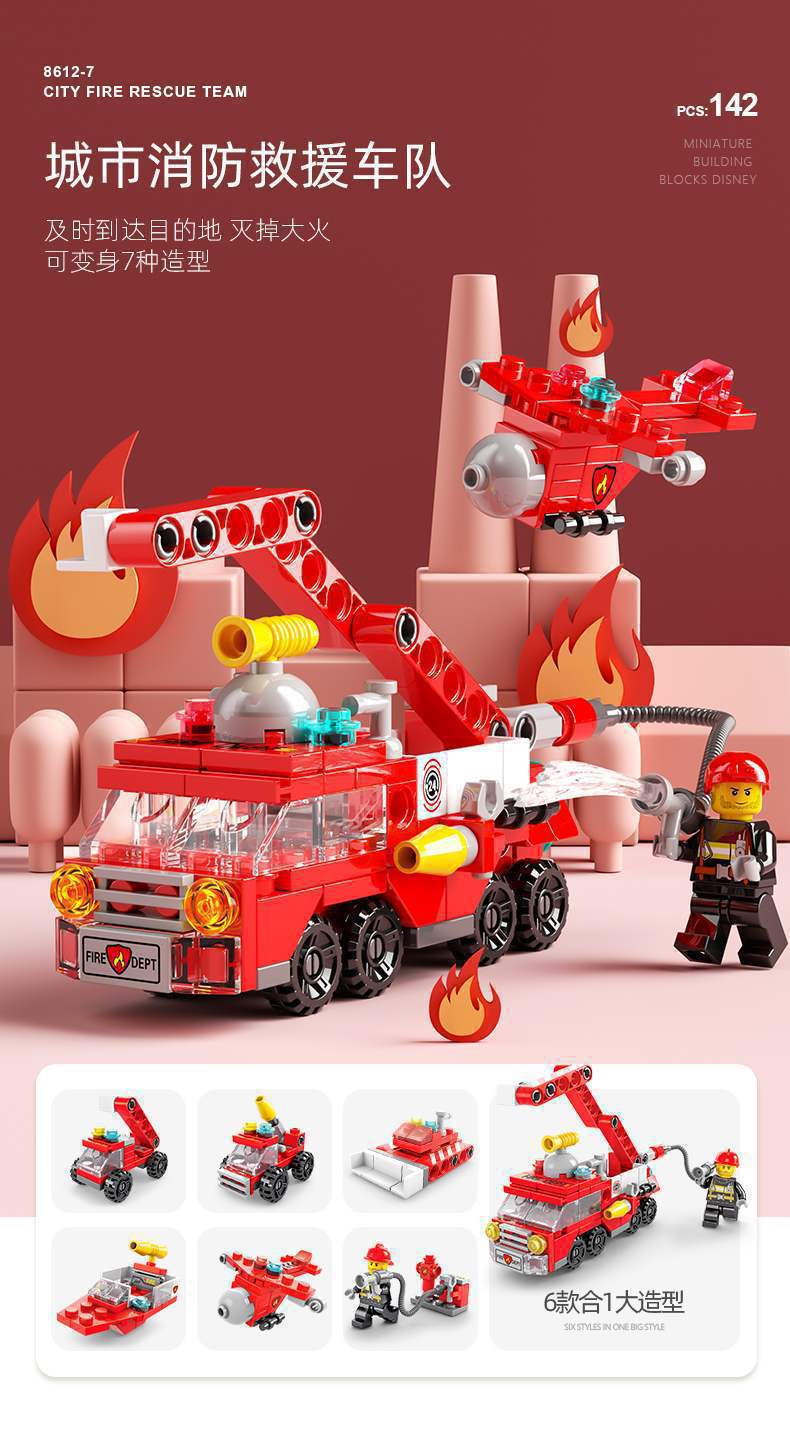 - 6合1消防车142pcs