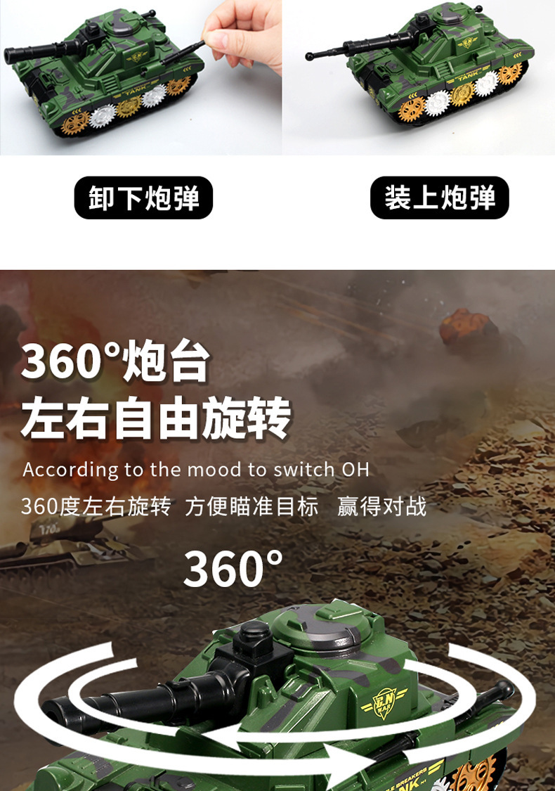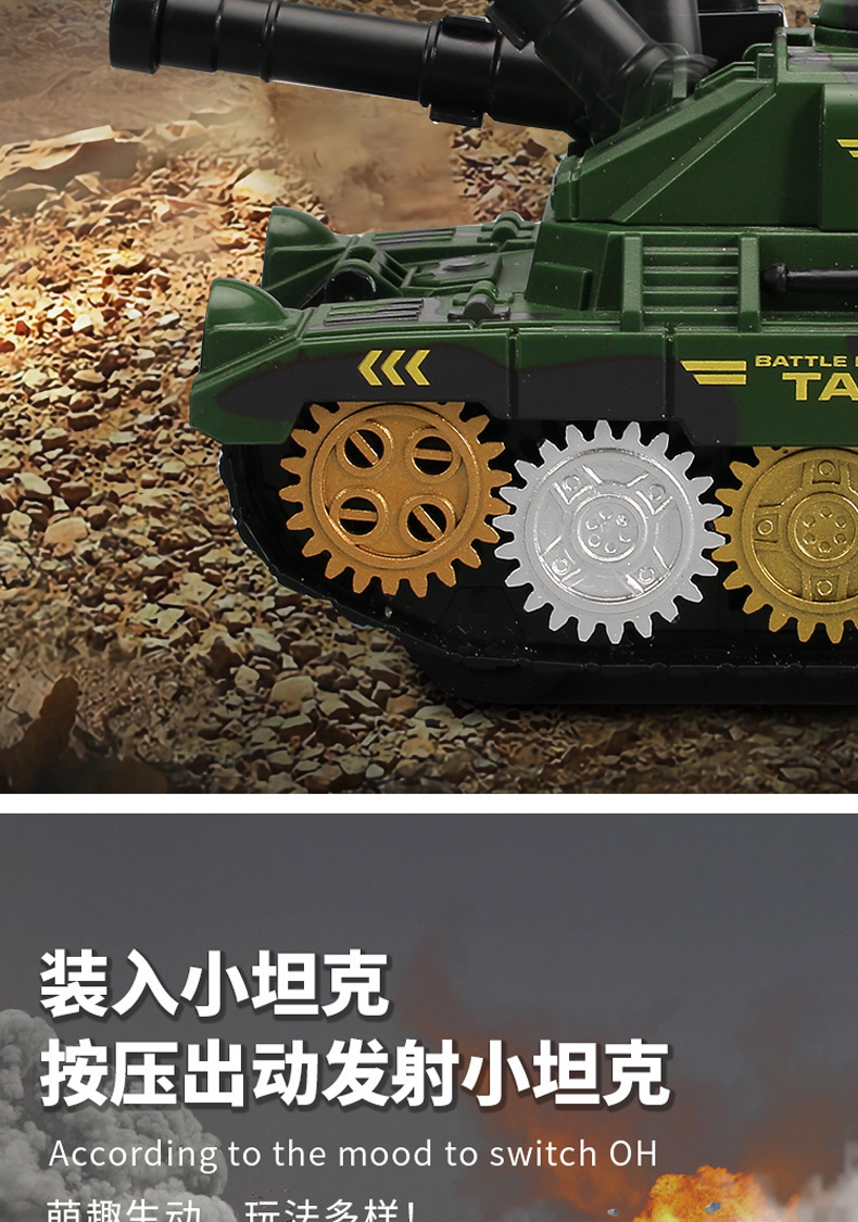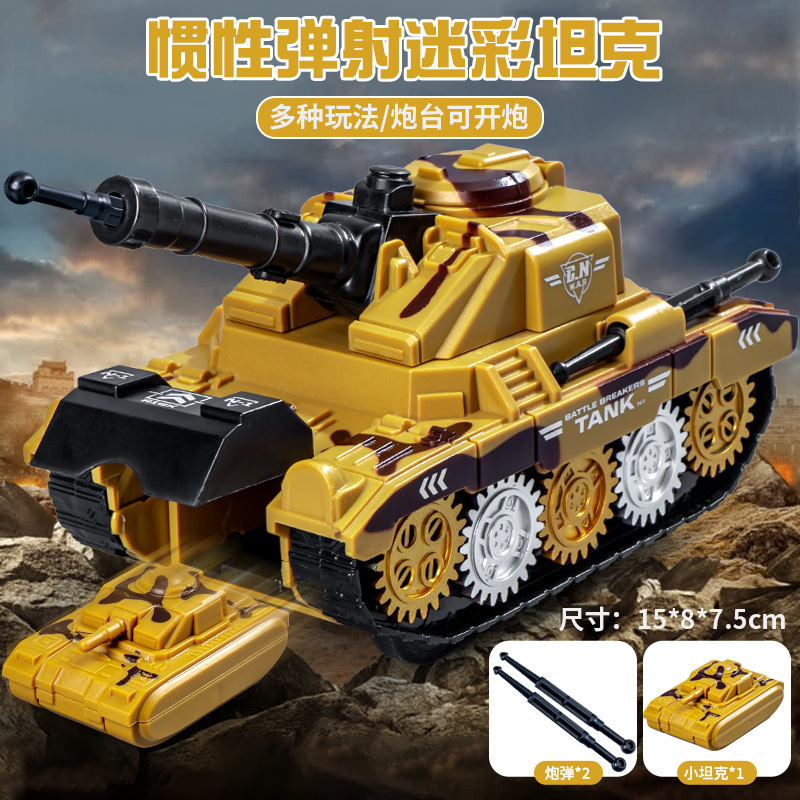 一健弹射坦克模型儿童玩具车可发射炮弹惯性车男孩子军事汽车