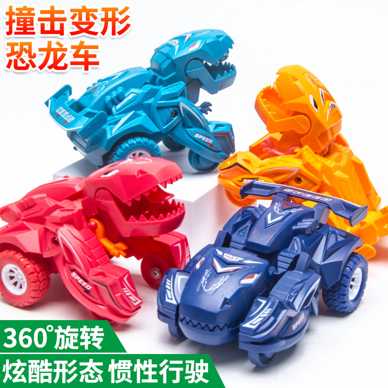 跨境撞击变形恐龙玩具车儿童惯性小汽车耐摔可旋转男孩玩具车