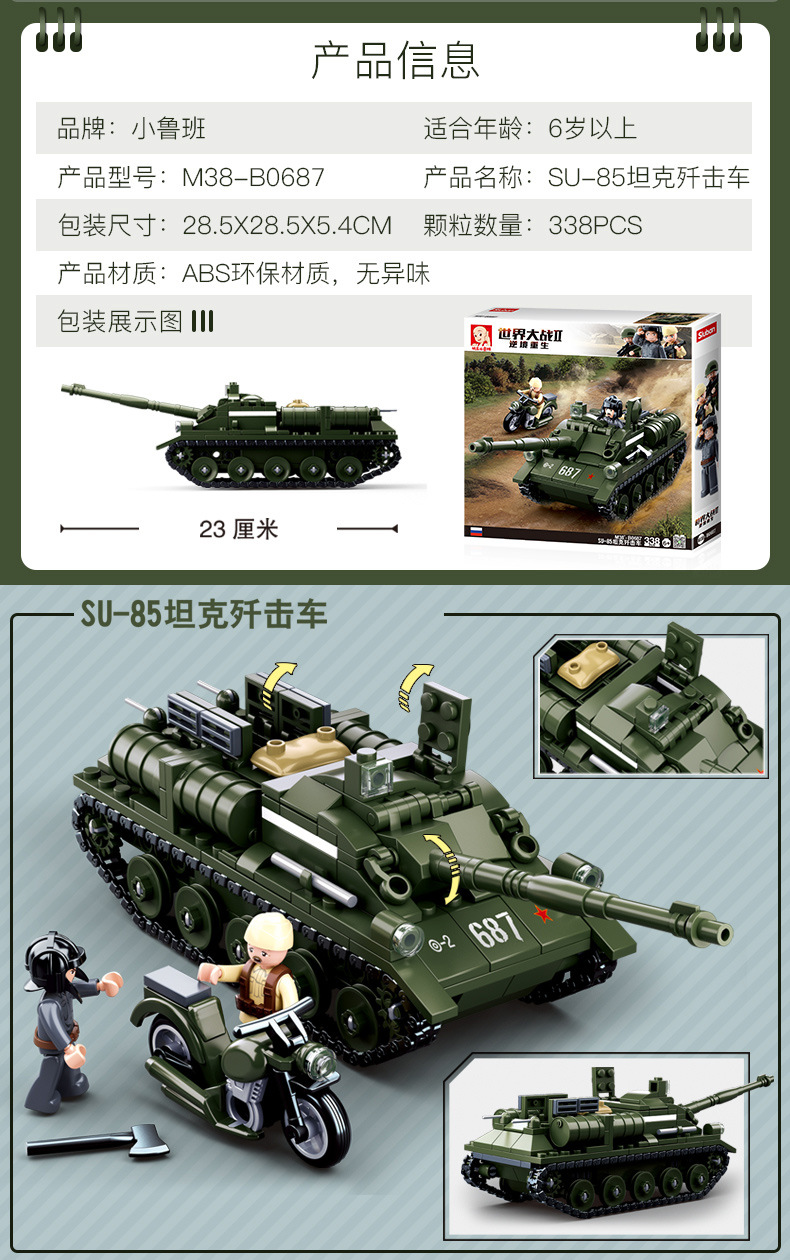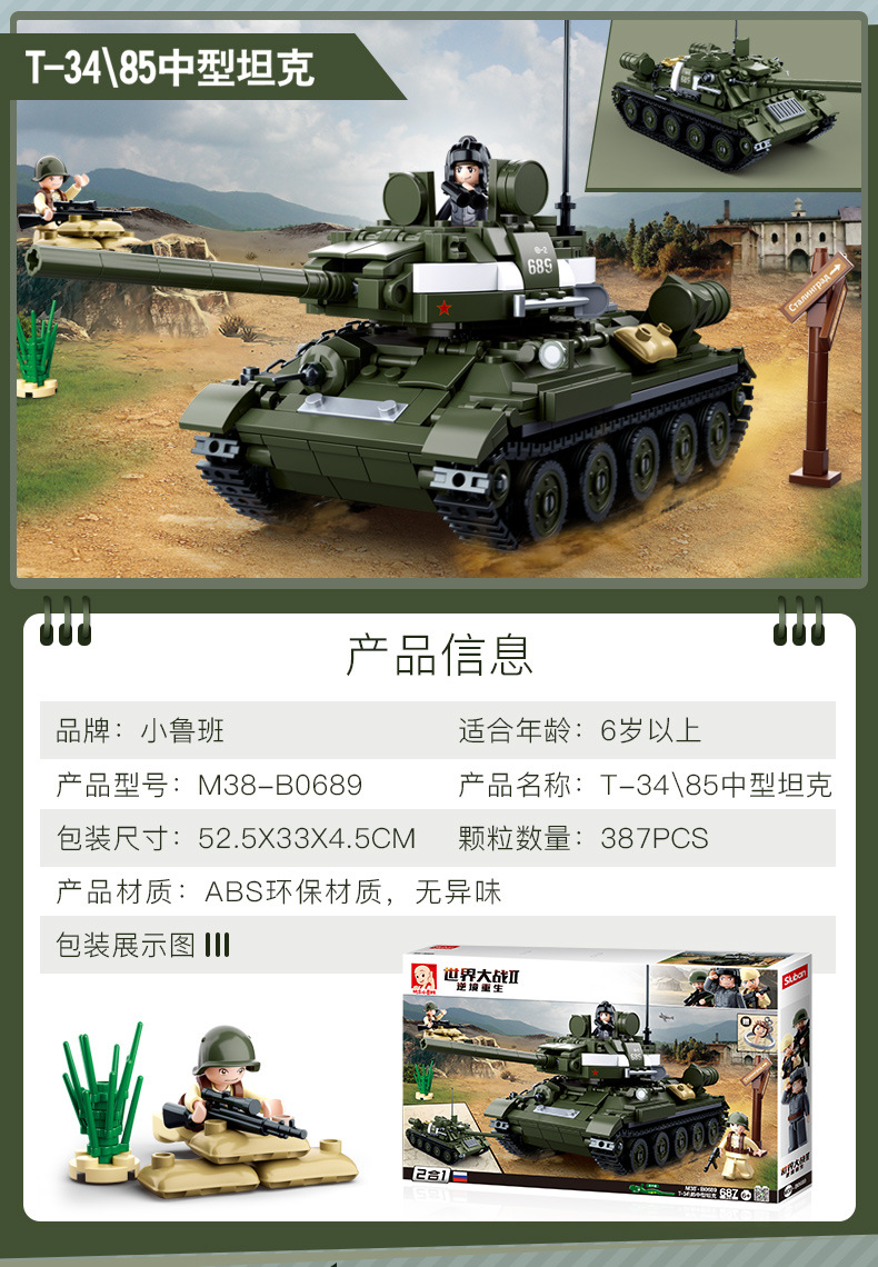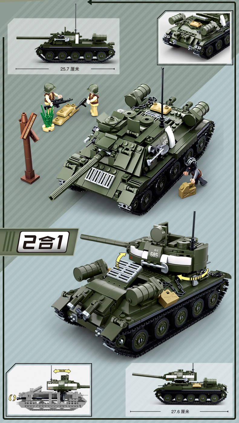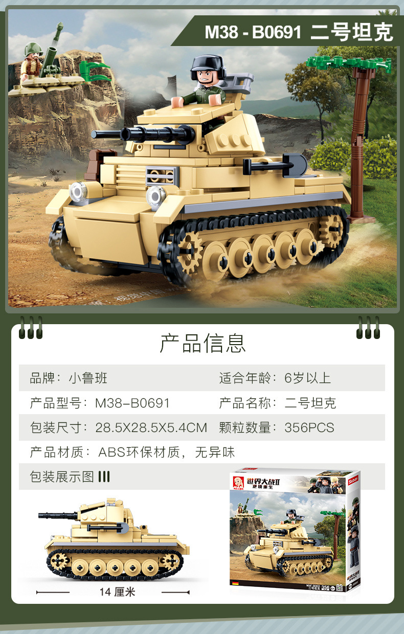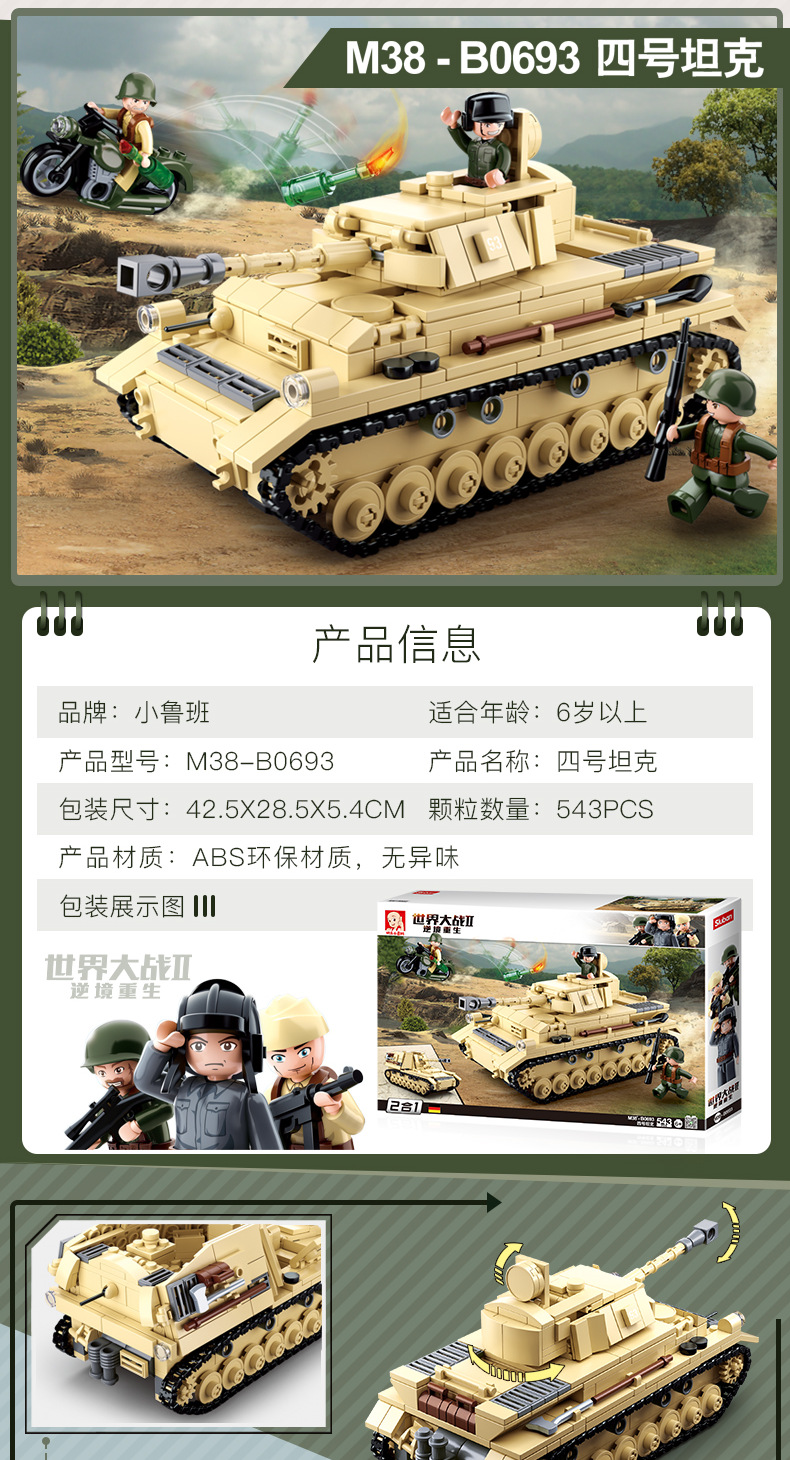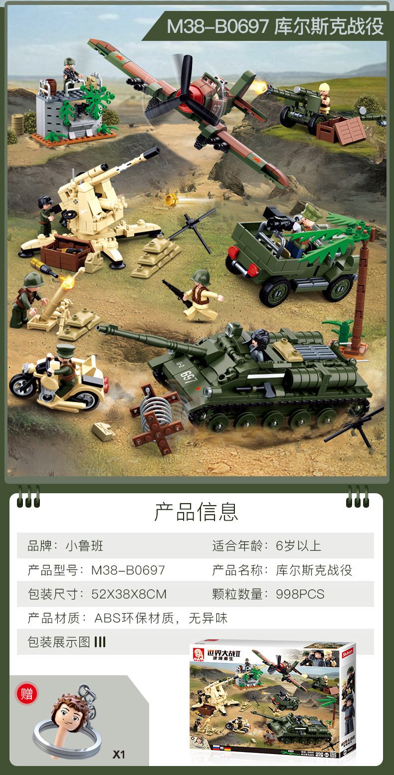 小鲁班0679-0697积木二战军事坦克模型99A主战履带式男孩益智玩具