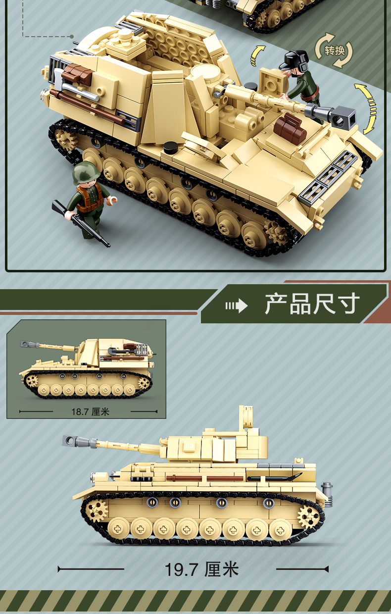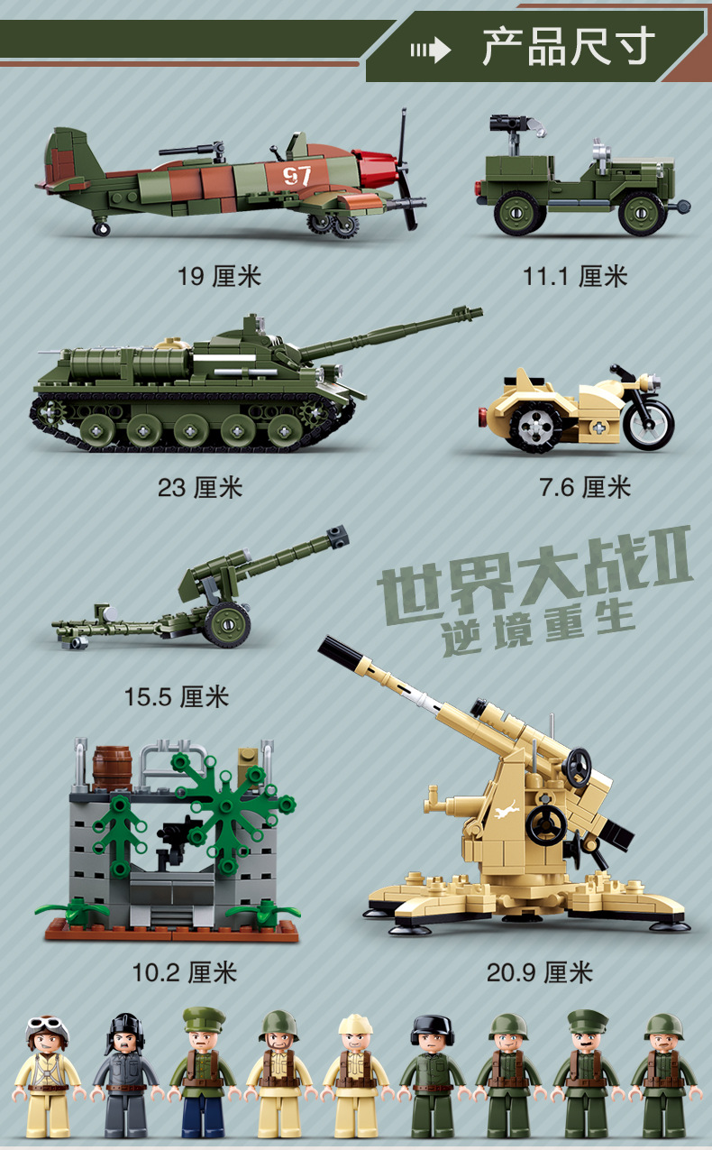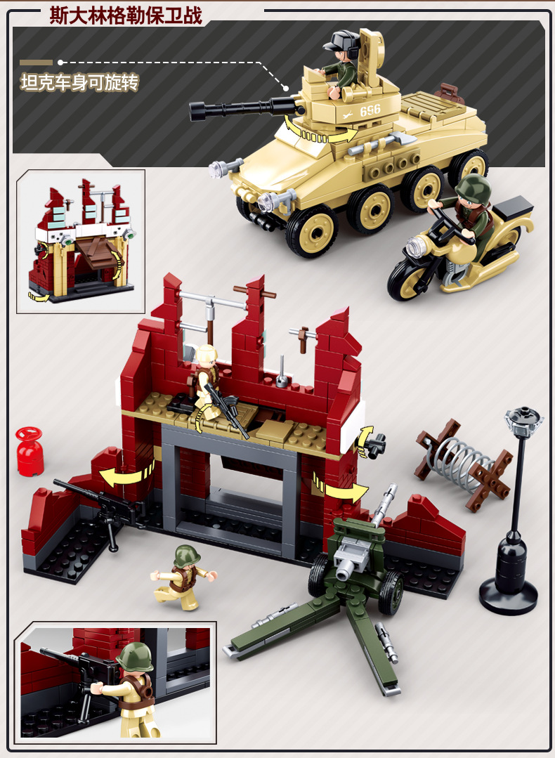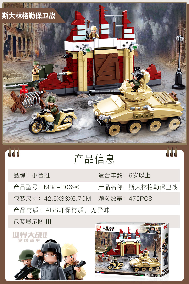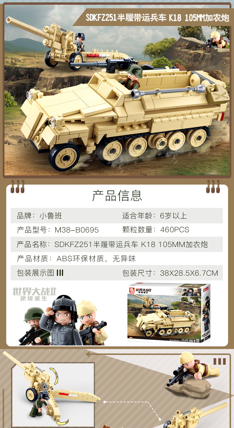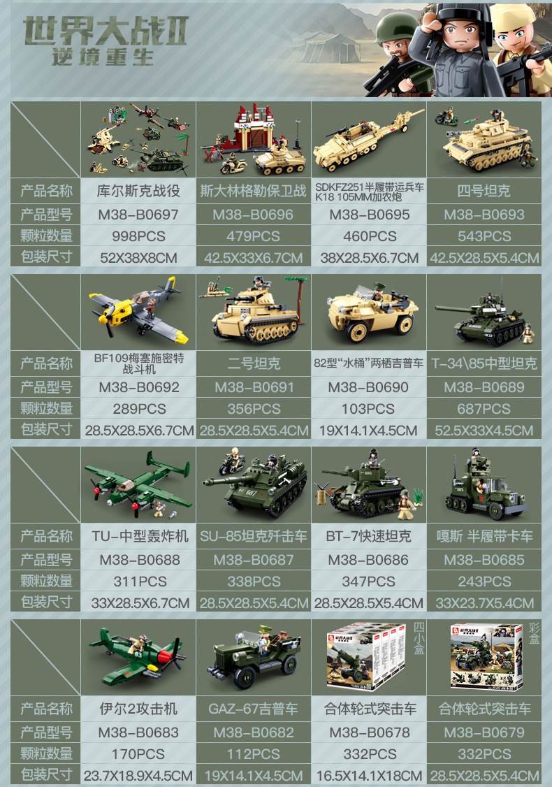 小鲁班0679-0697积木二战军事坦克模型99A主战履带式男孩益智玩具