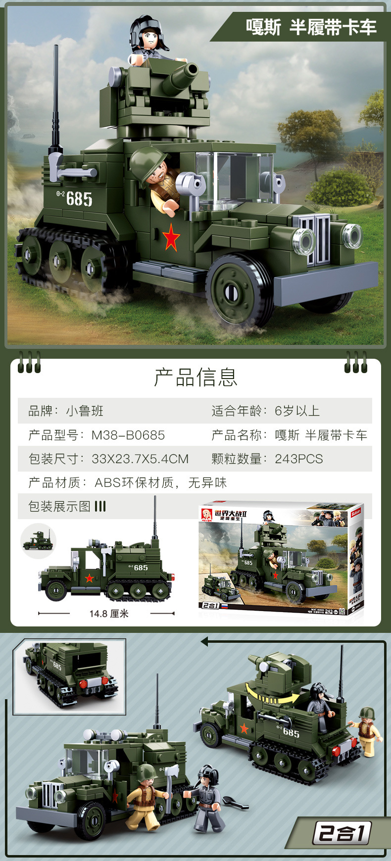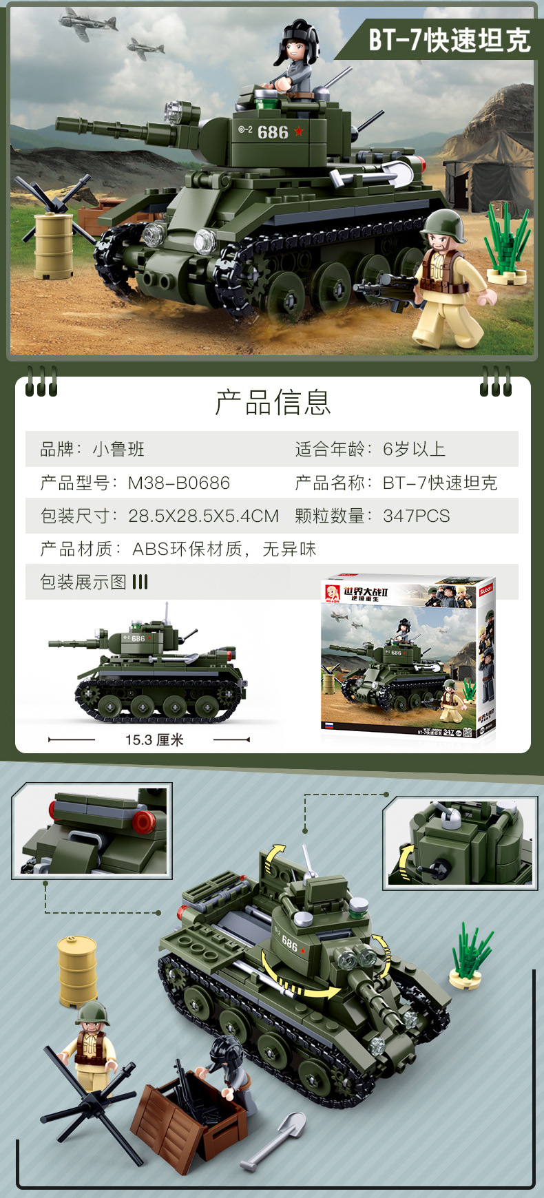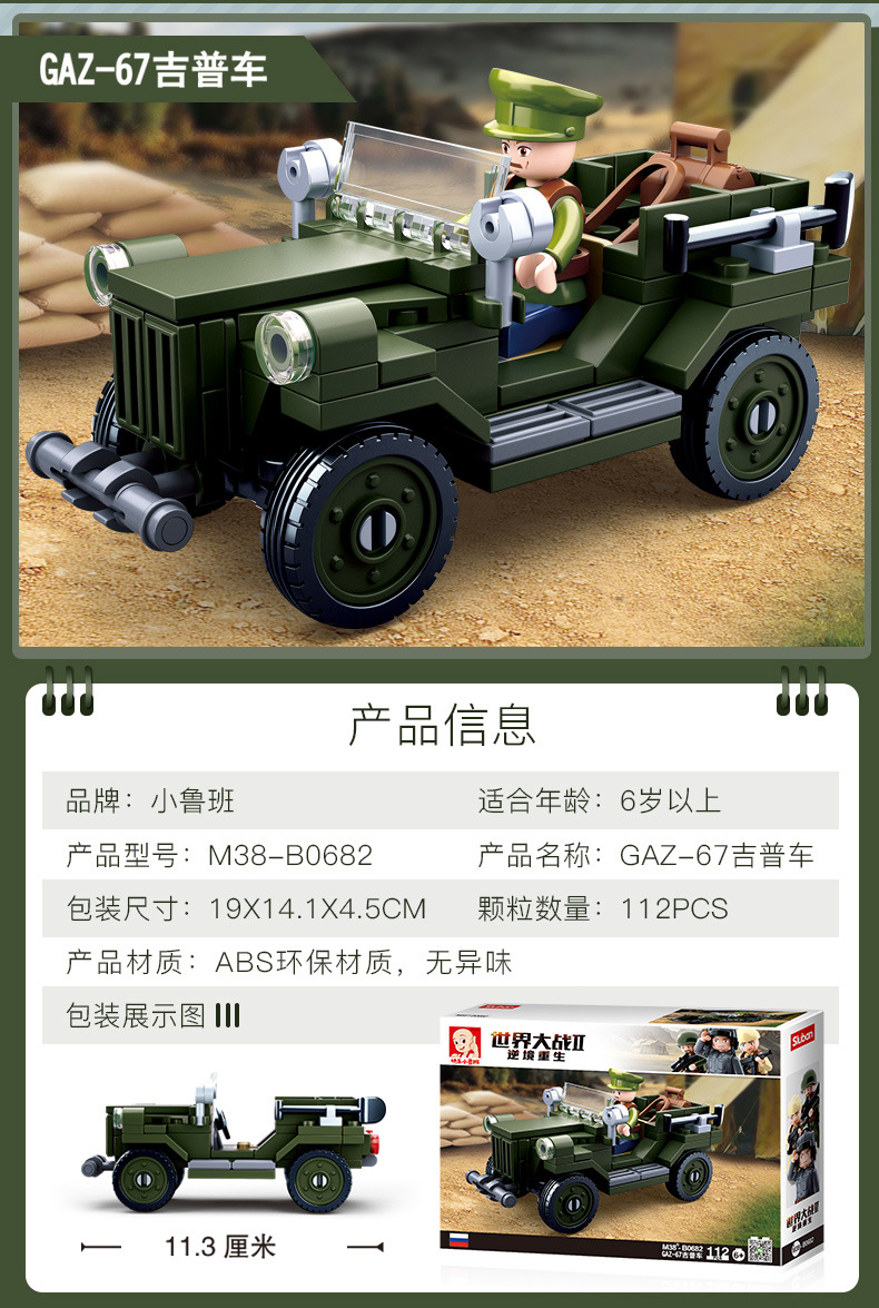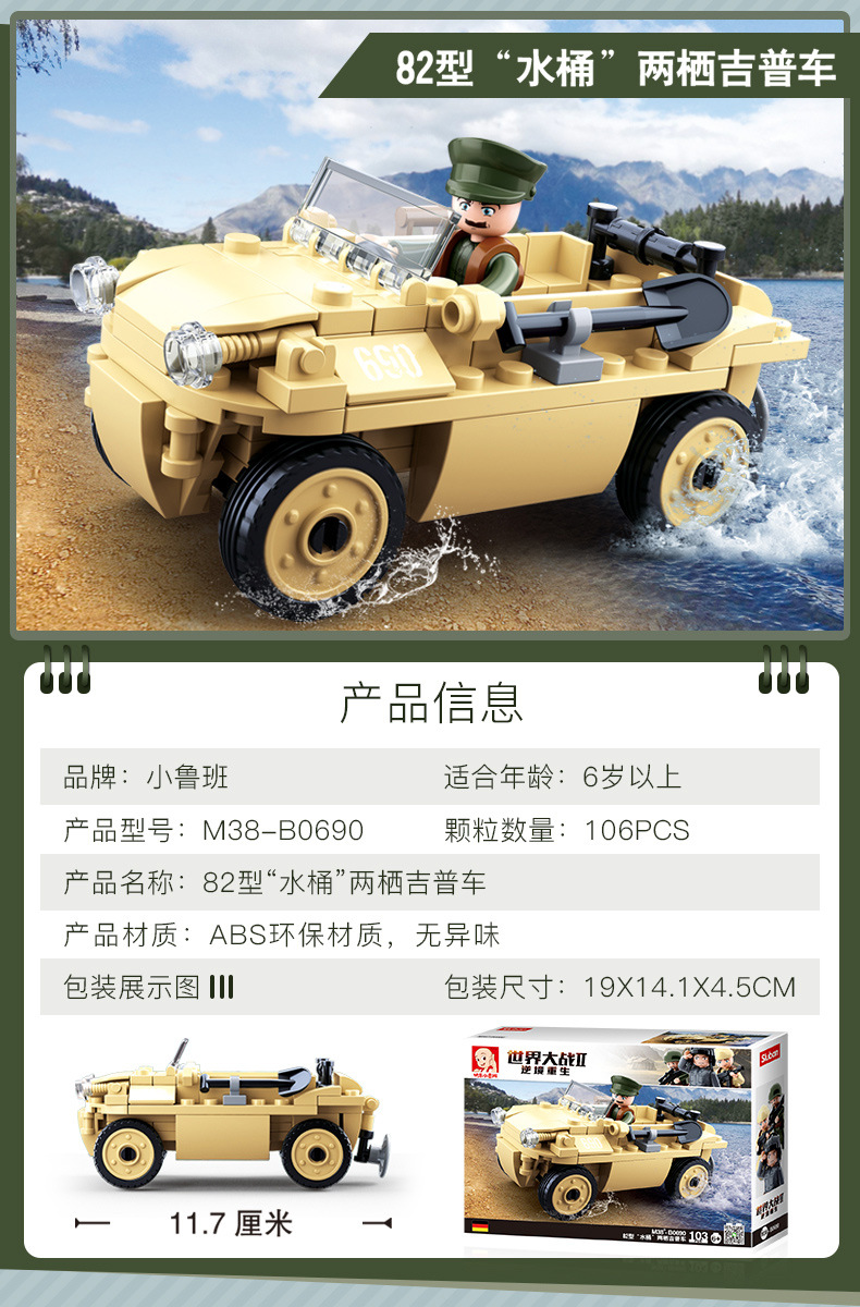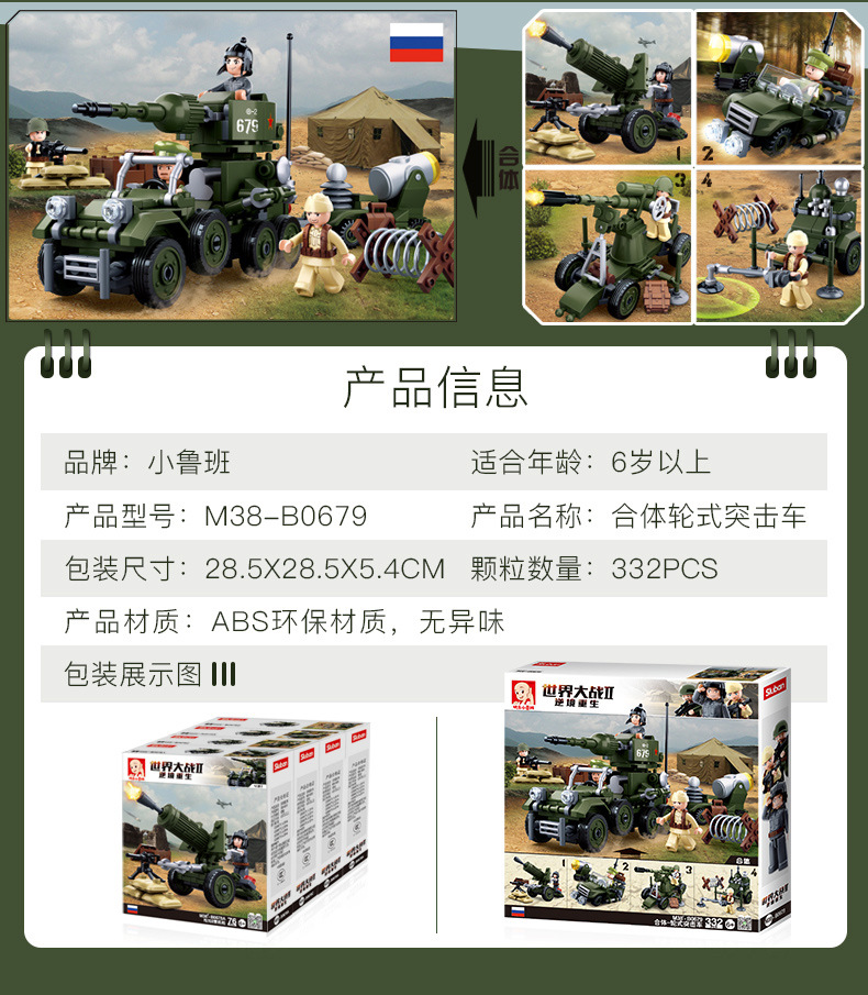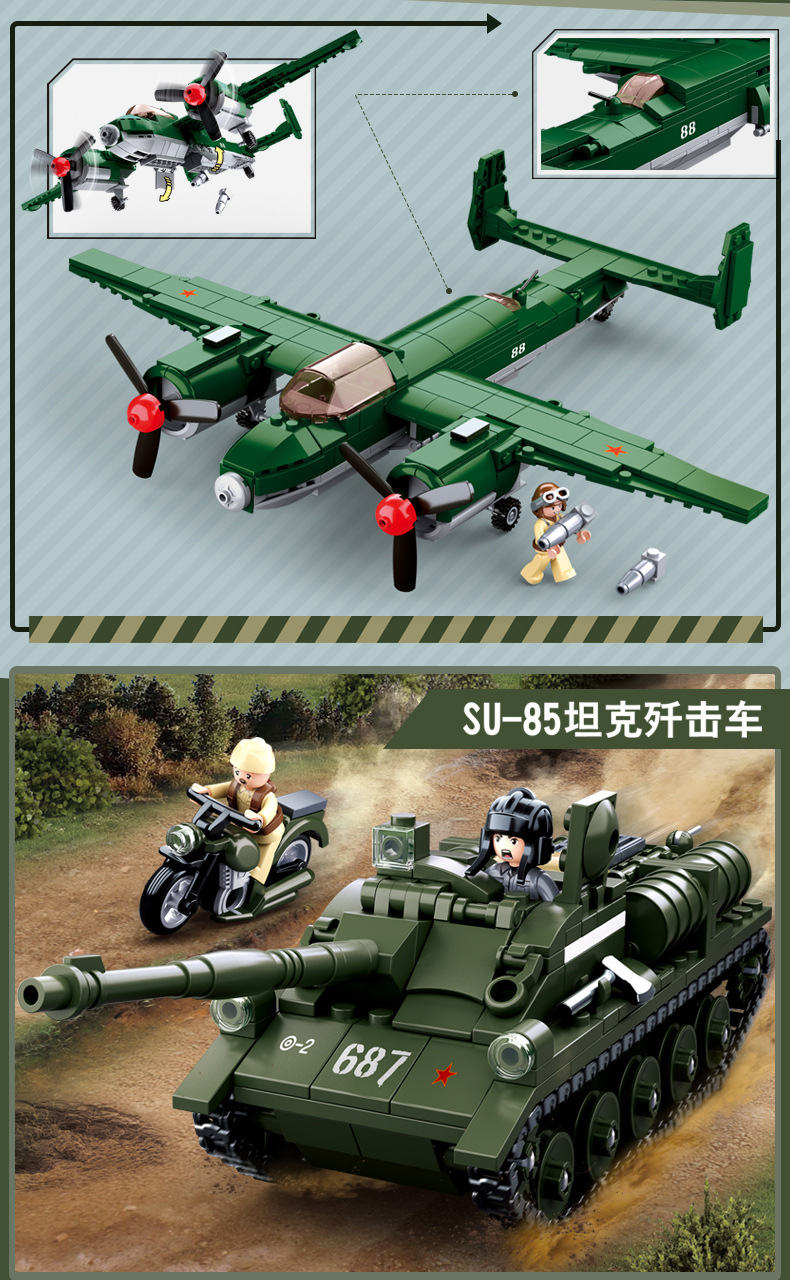 小鲁班0679-0697积木二战军事坦克模型99A主战履带式男孩益智玩具