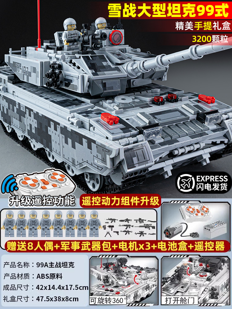 - 【雪地遥控版】99A主战坦克_3180颗粒_送8人仔_超多武器