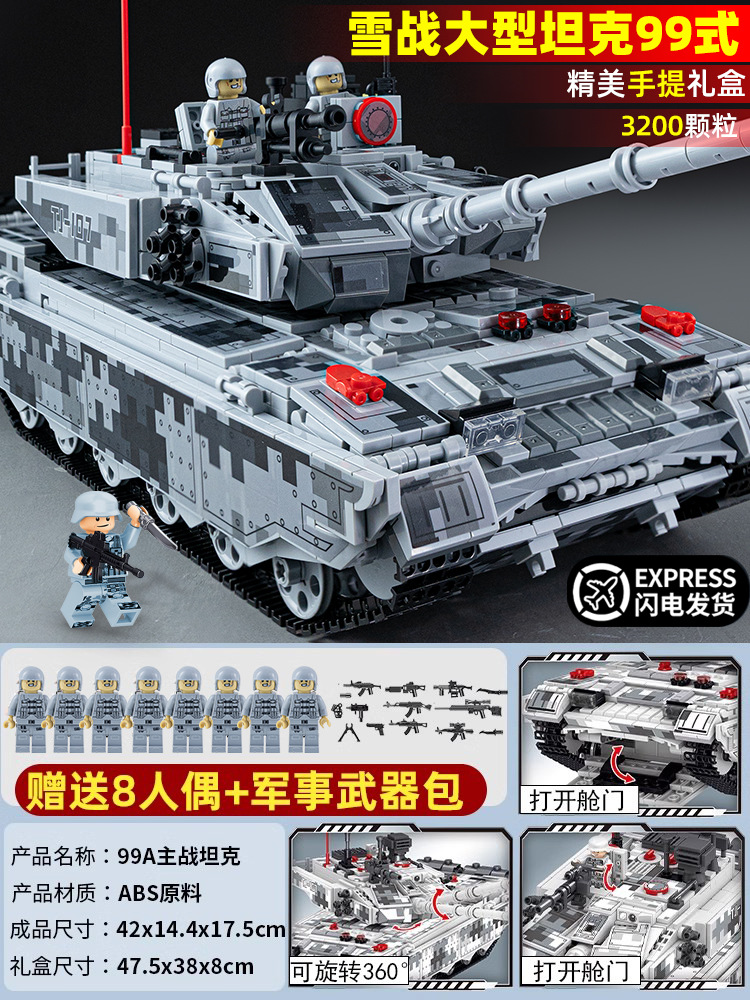 - 【雪地突击版】99A主战坦克3180颗粒送8人仔超多武器