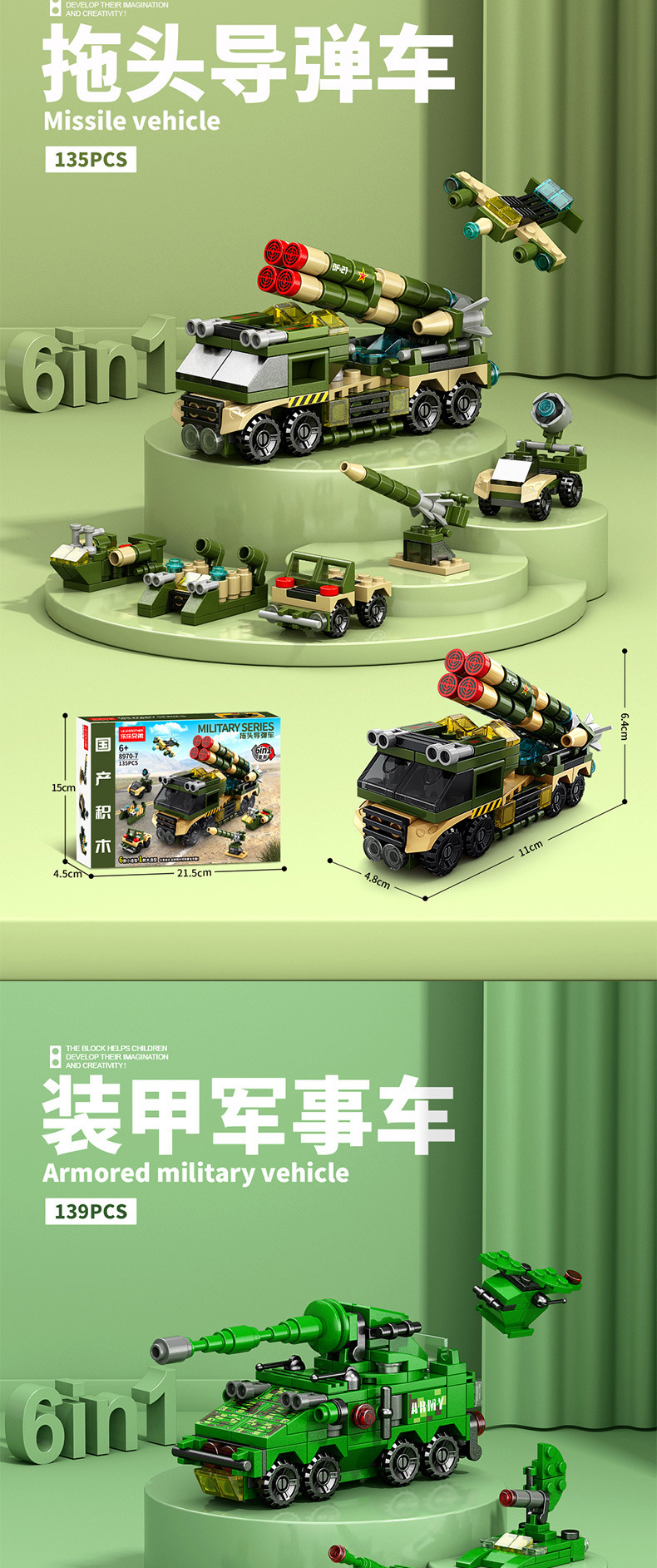 - 8970-7导弹车六合一【彩盒装】135PCS