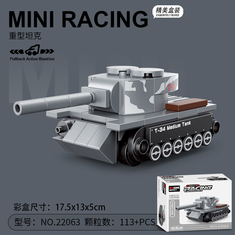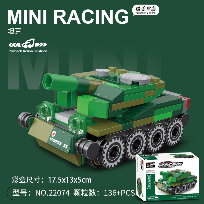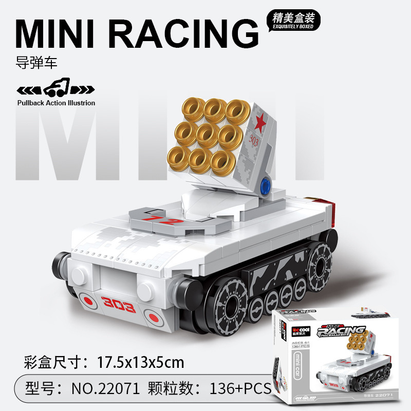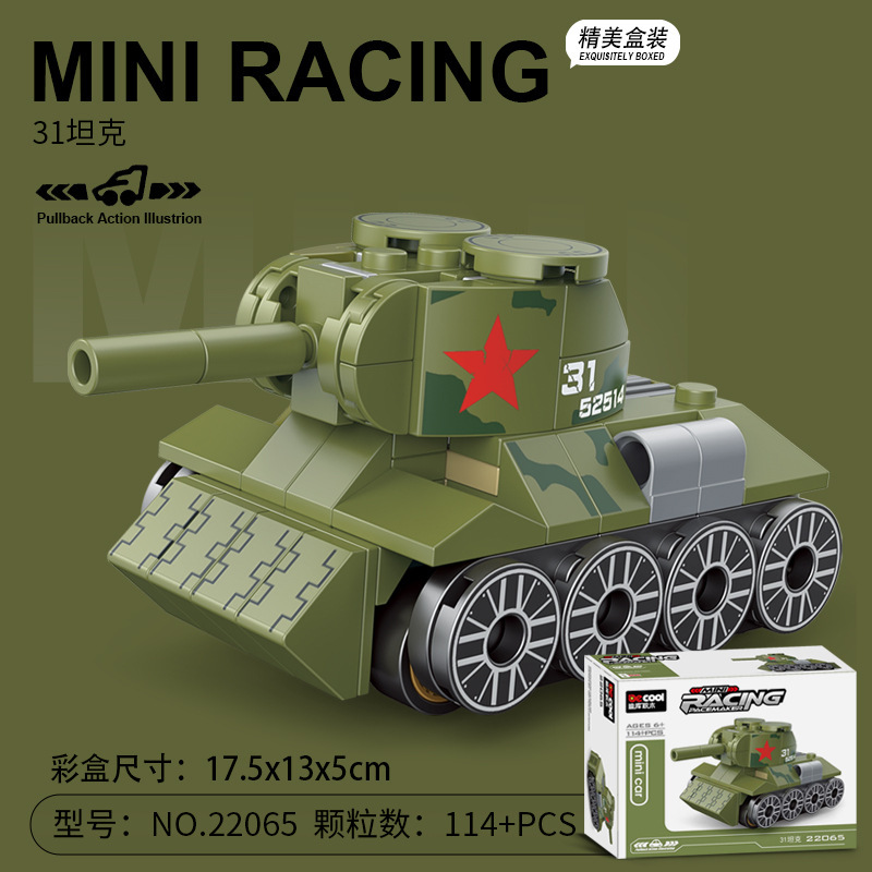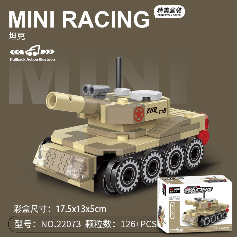 迪库积木儿童拼装回力玩具车坦克导弹汽车拼图礼物兼容乐高