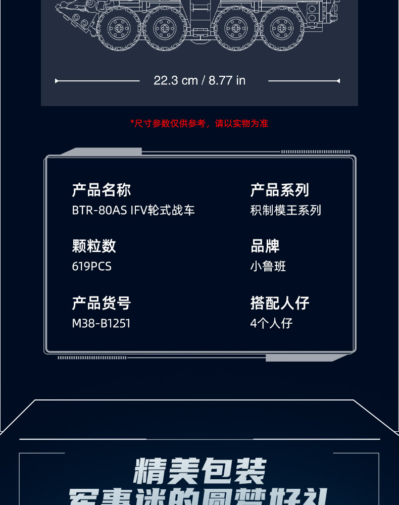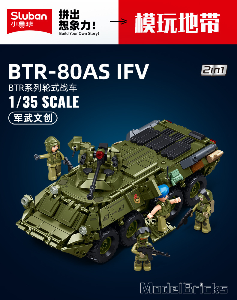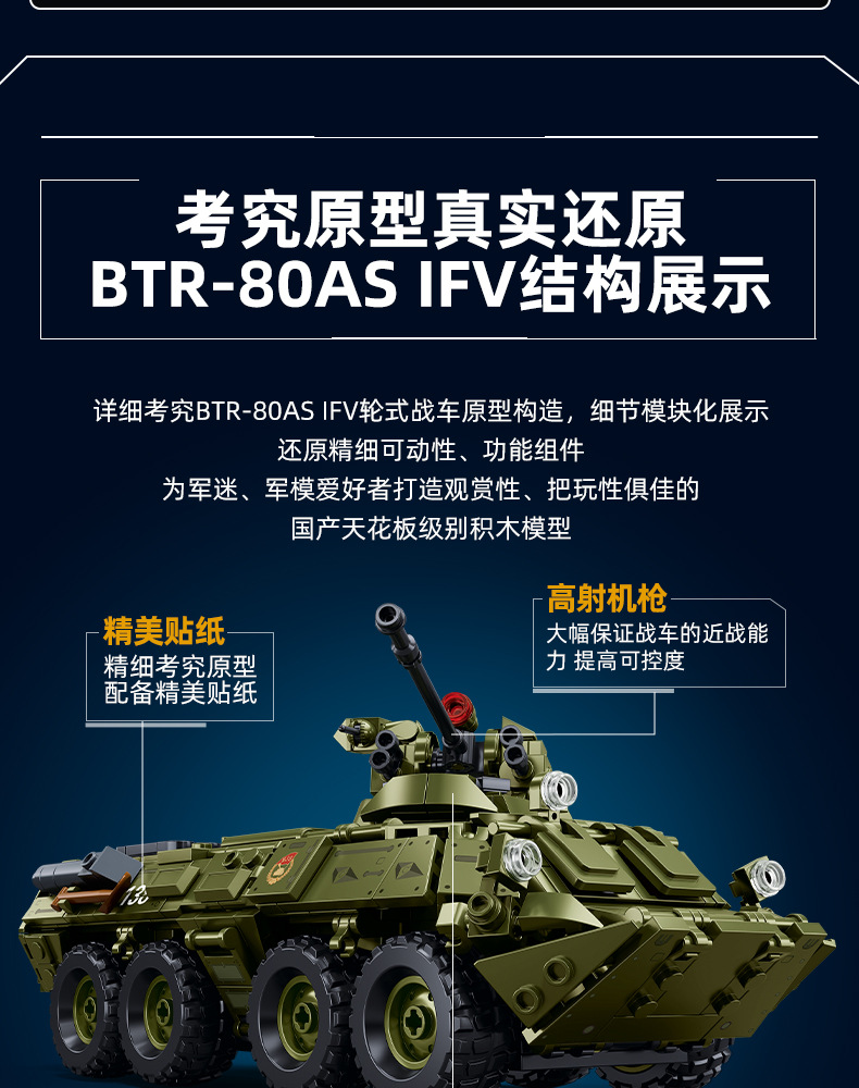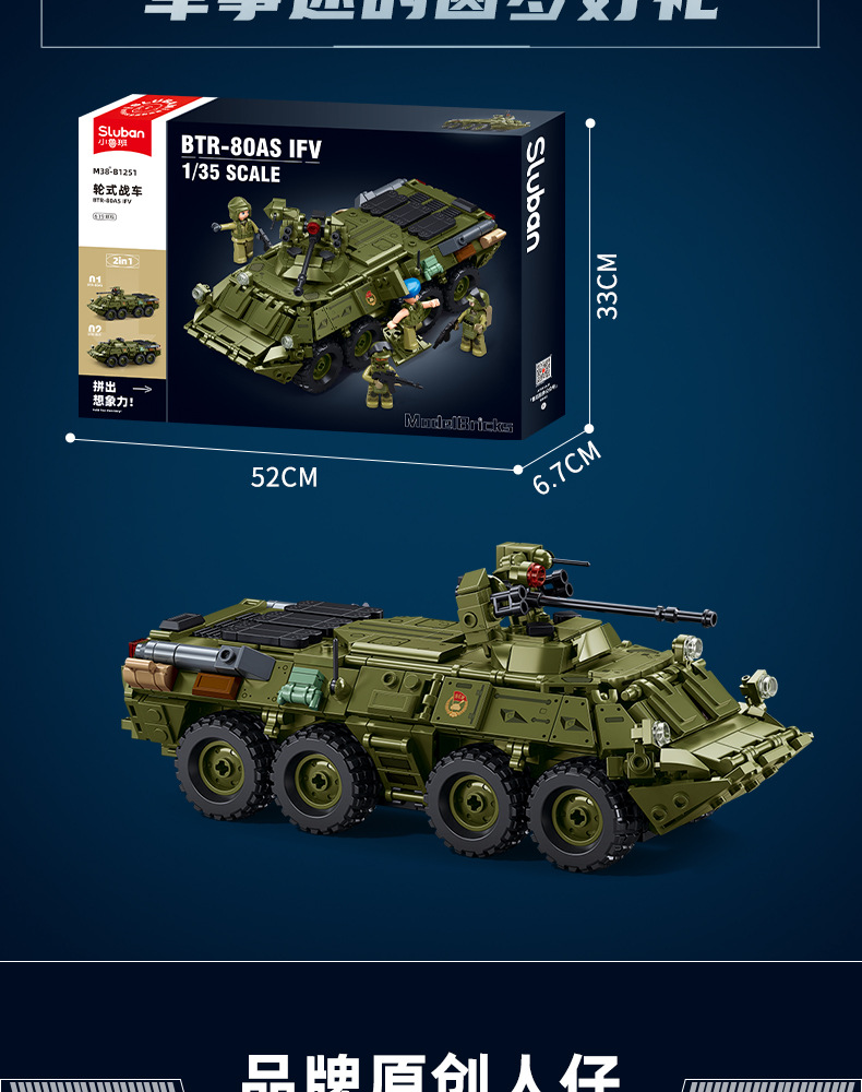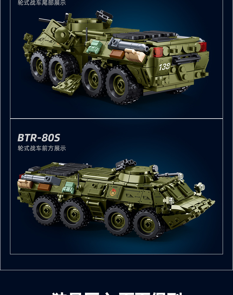 小鲁班BTR80AS步兵战车积木军事坦克模型益智拼装玩具男