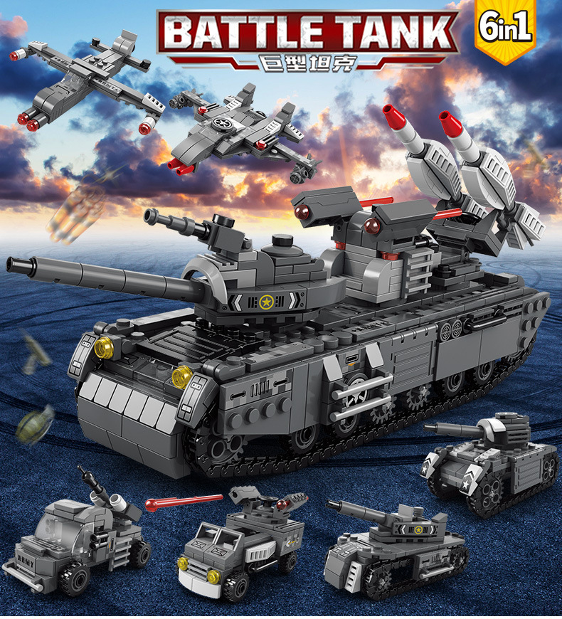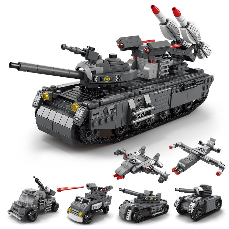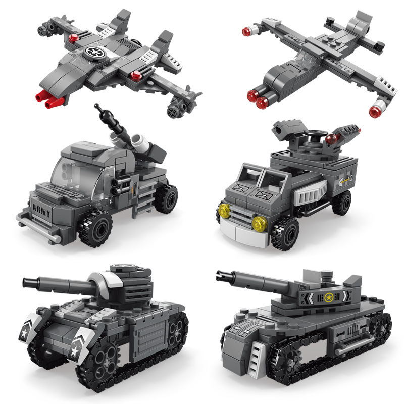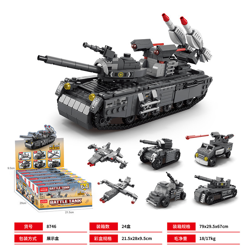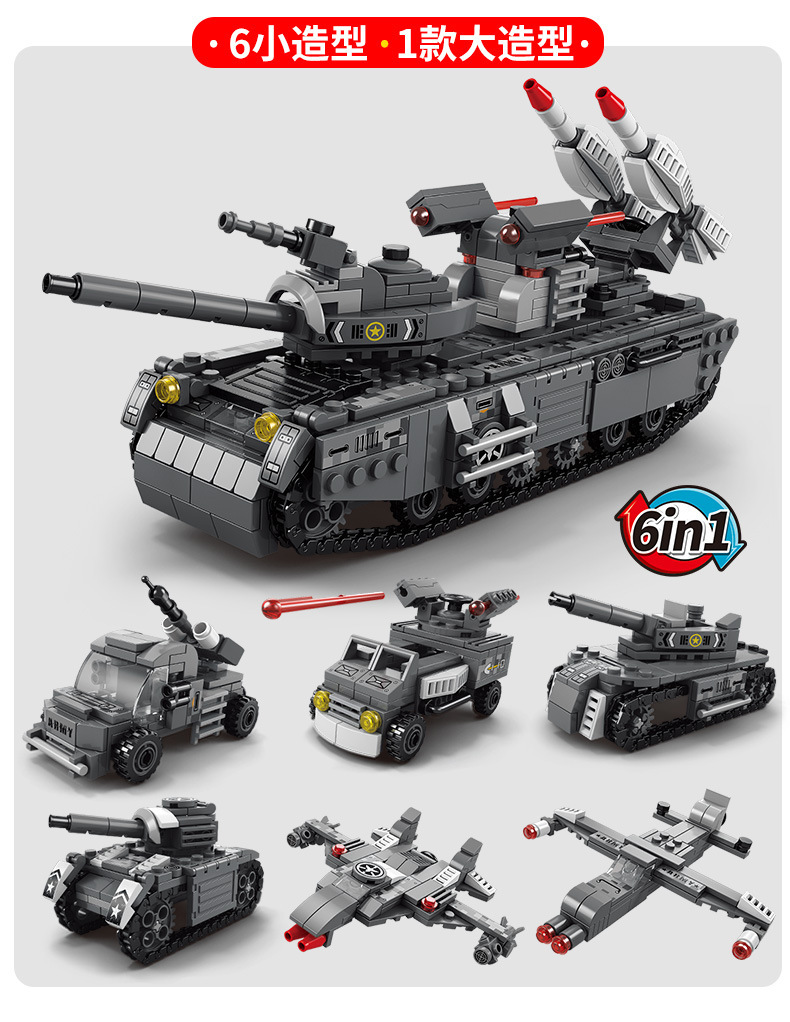 军事防空坦克6合1兼容乐高积木儿童益智拼装玩具