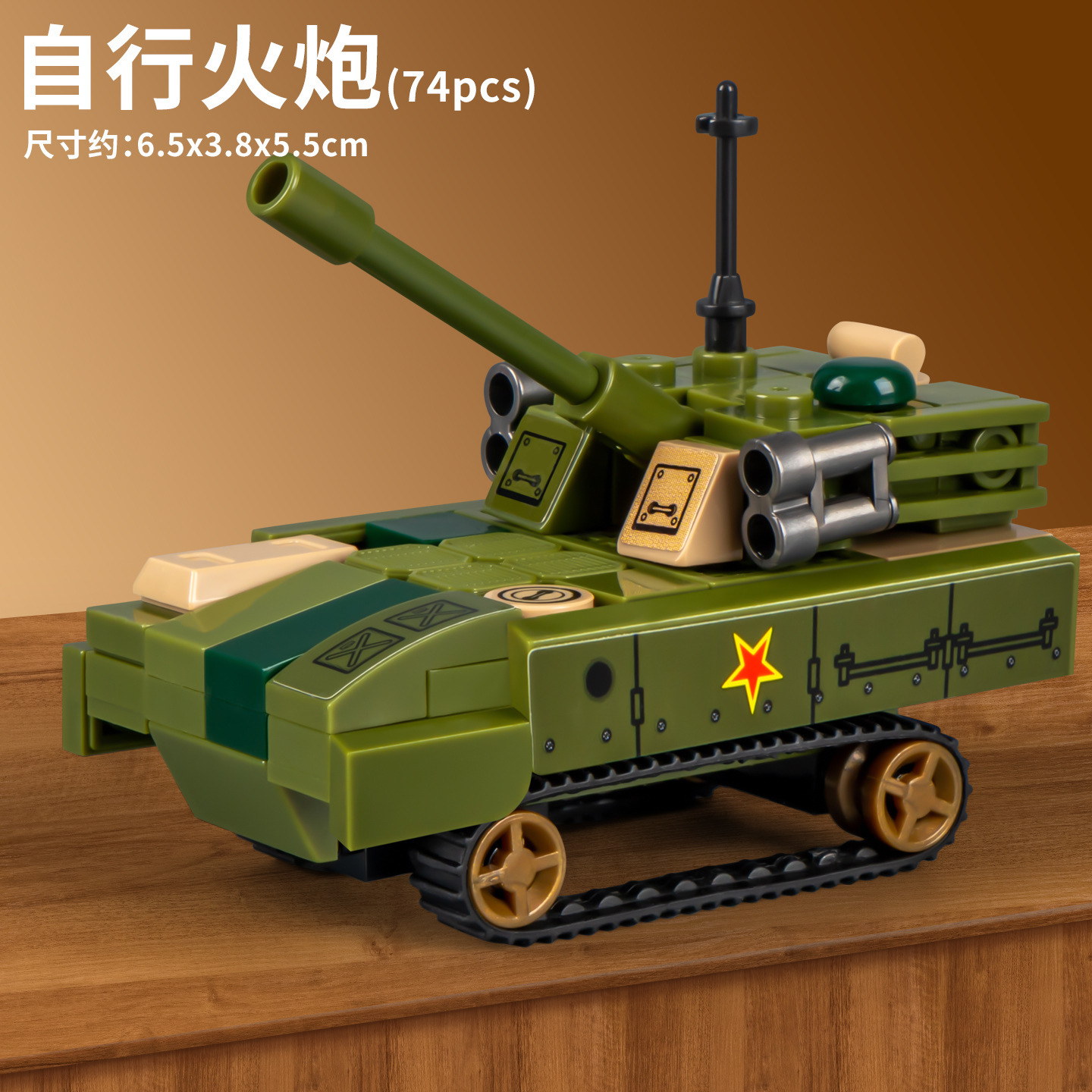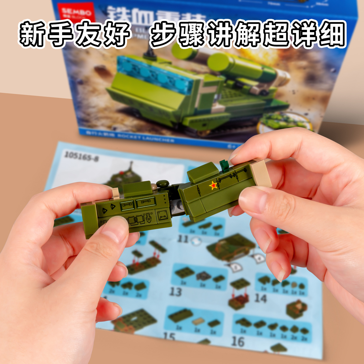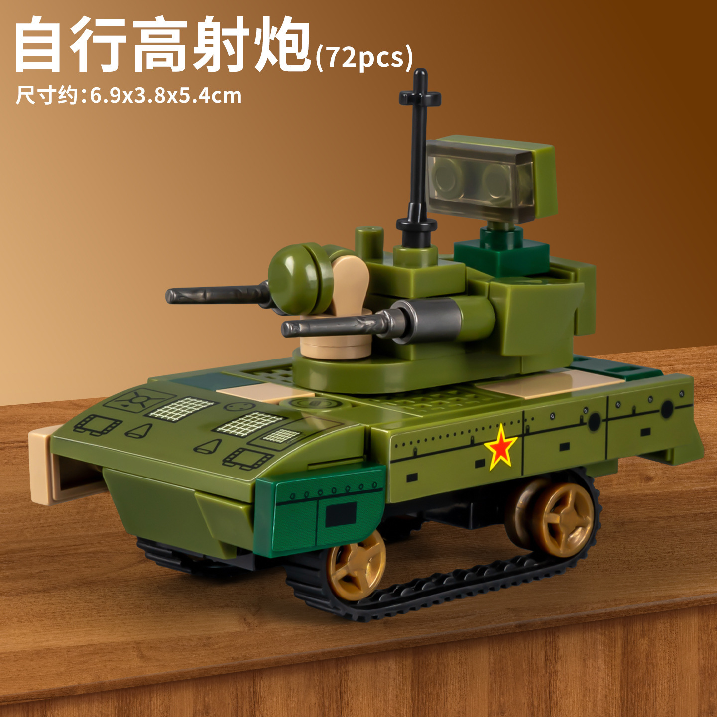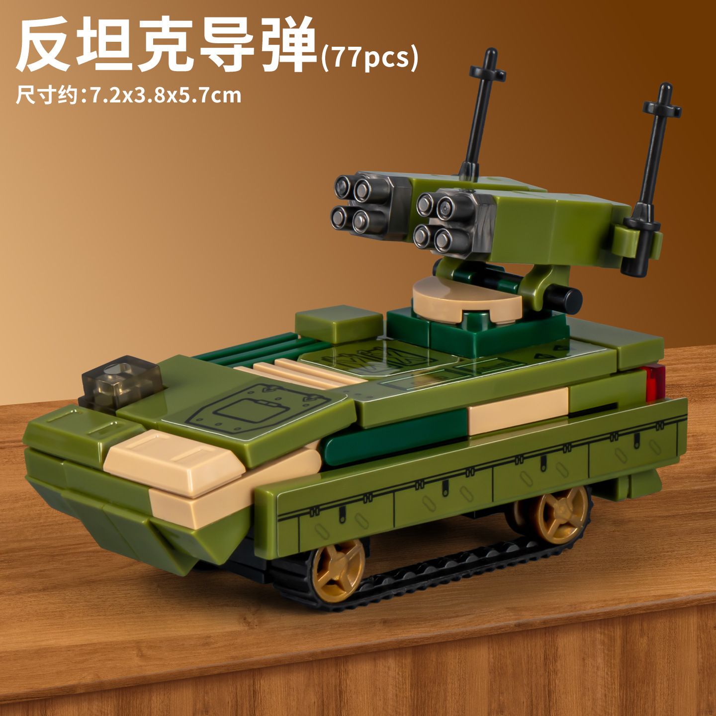 森宝8合1积木铁血重装巷战坦克高射炮火箭炮儿童军事玩具拼装模型