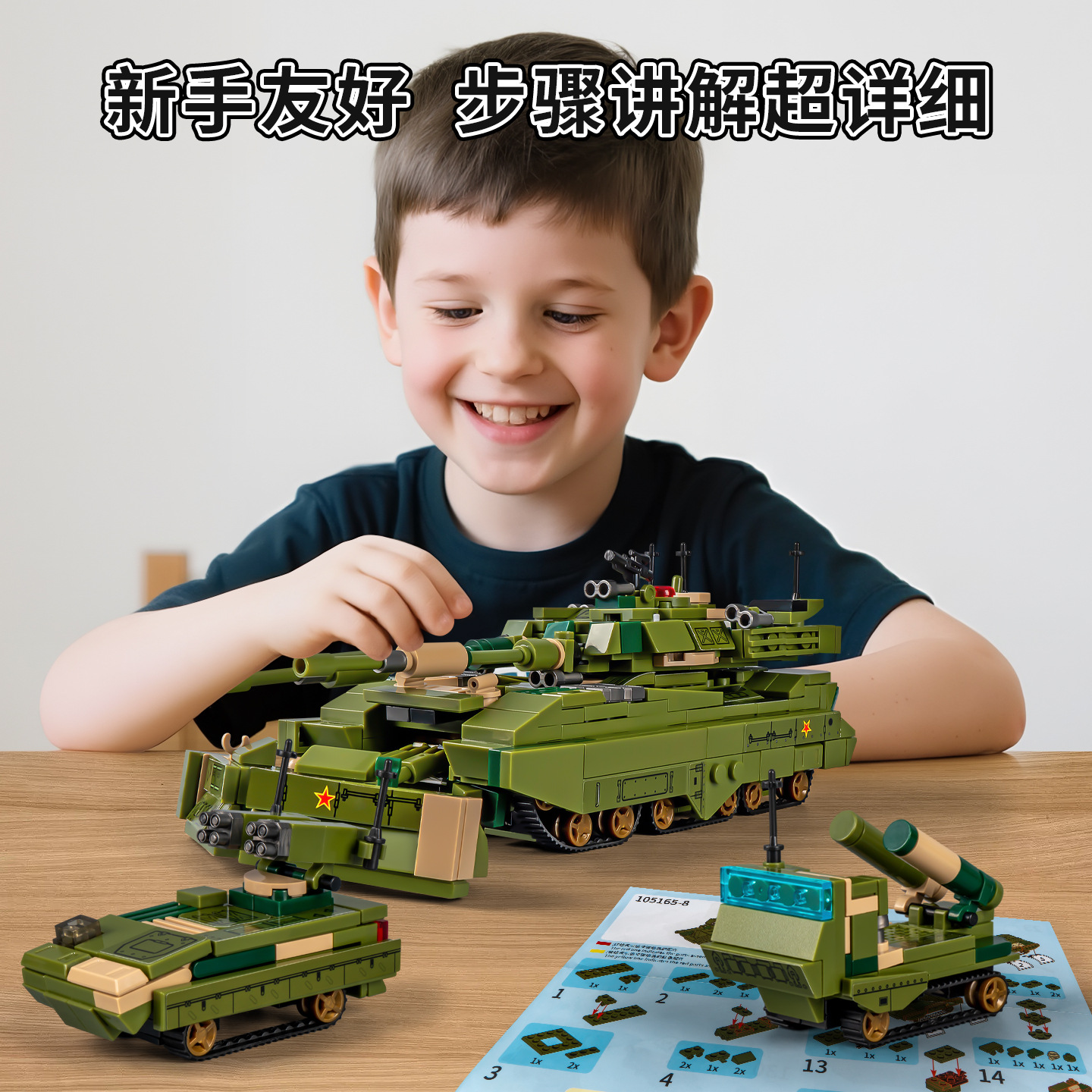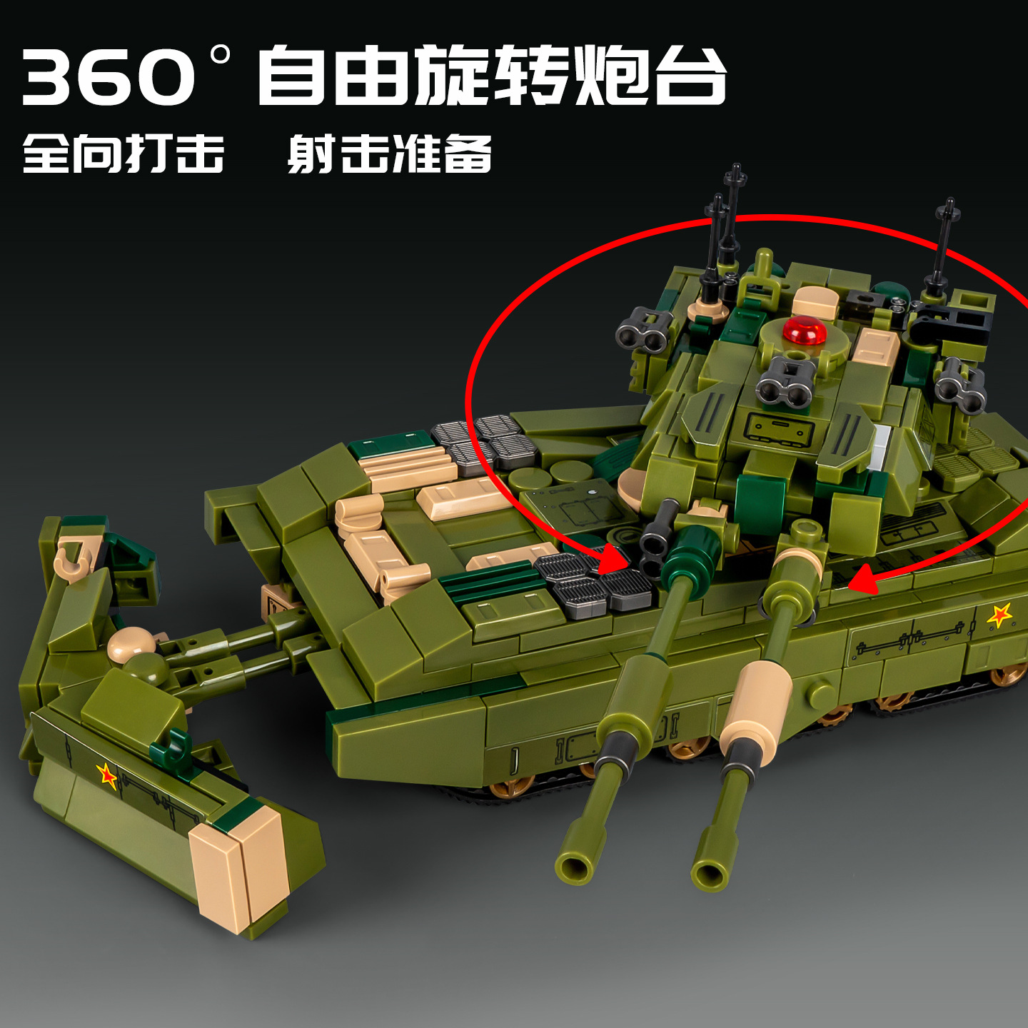 森宝积木99A式主战坦克合体天启坦克模型益智拼装拼图小颗粒玩具