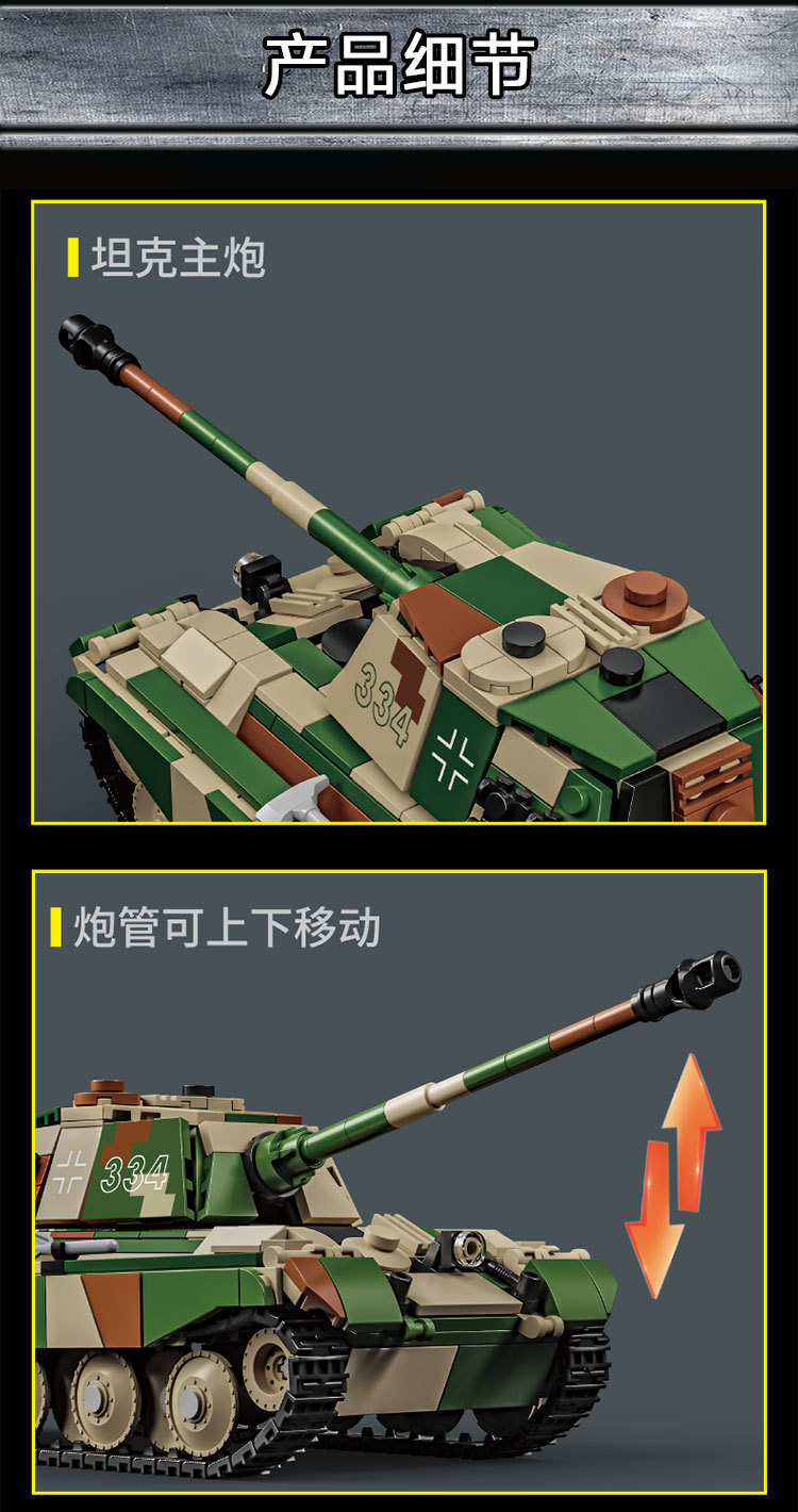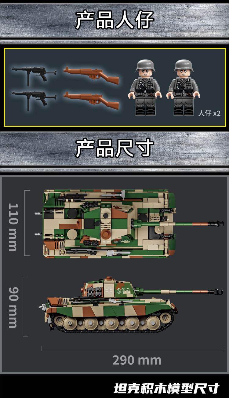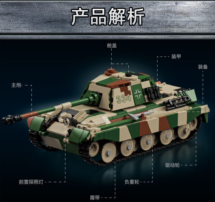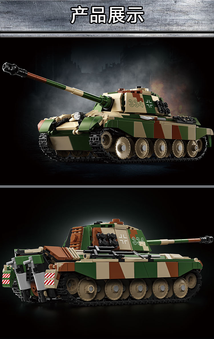 二战德国虎式坦克积木重型迷彩装甲车国产拼装军事模型男孩玩具