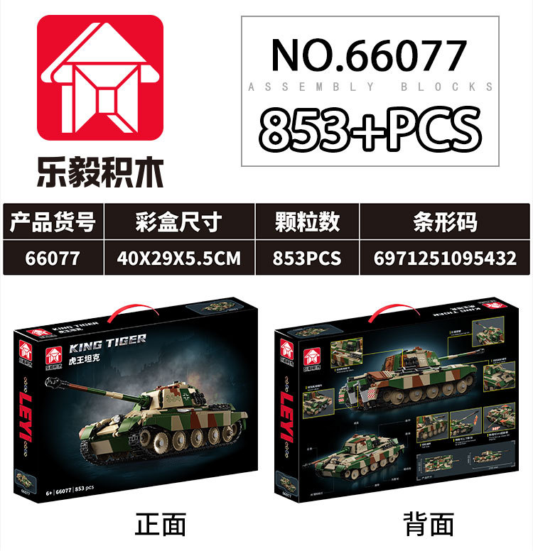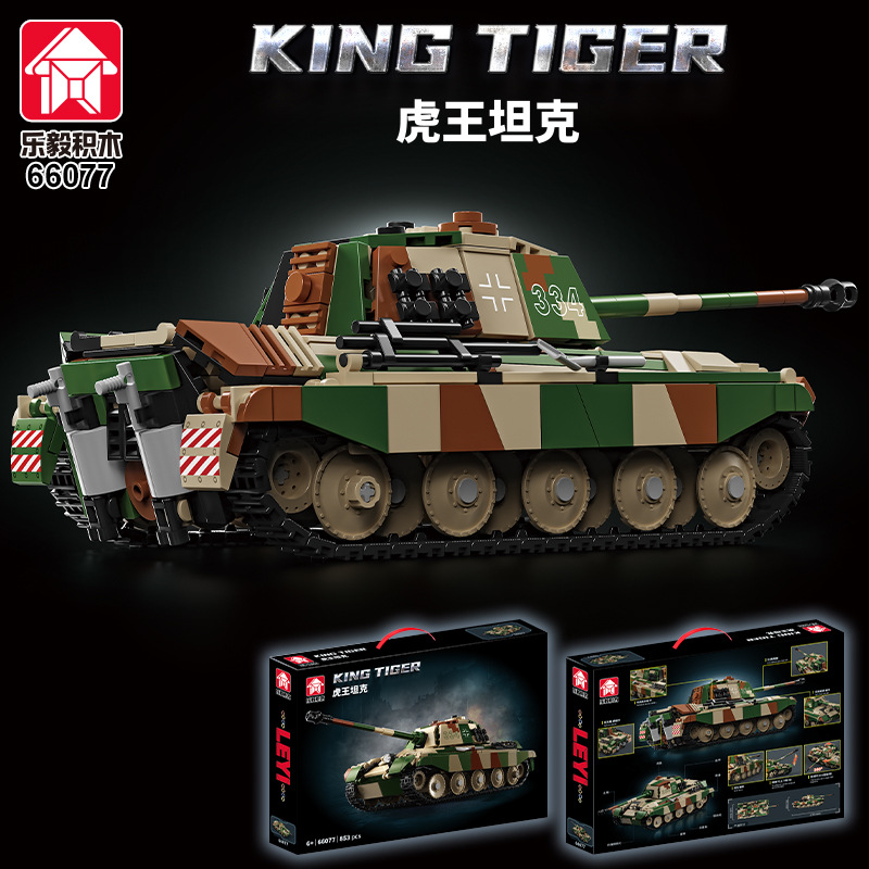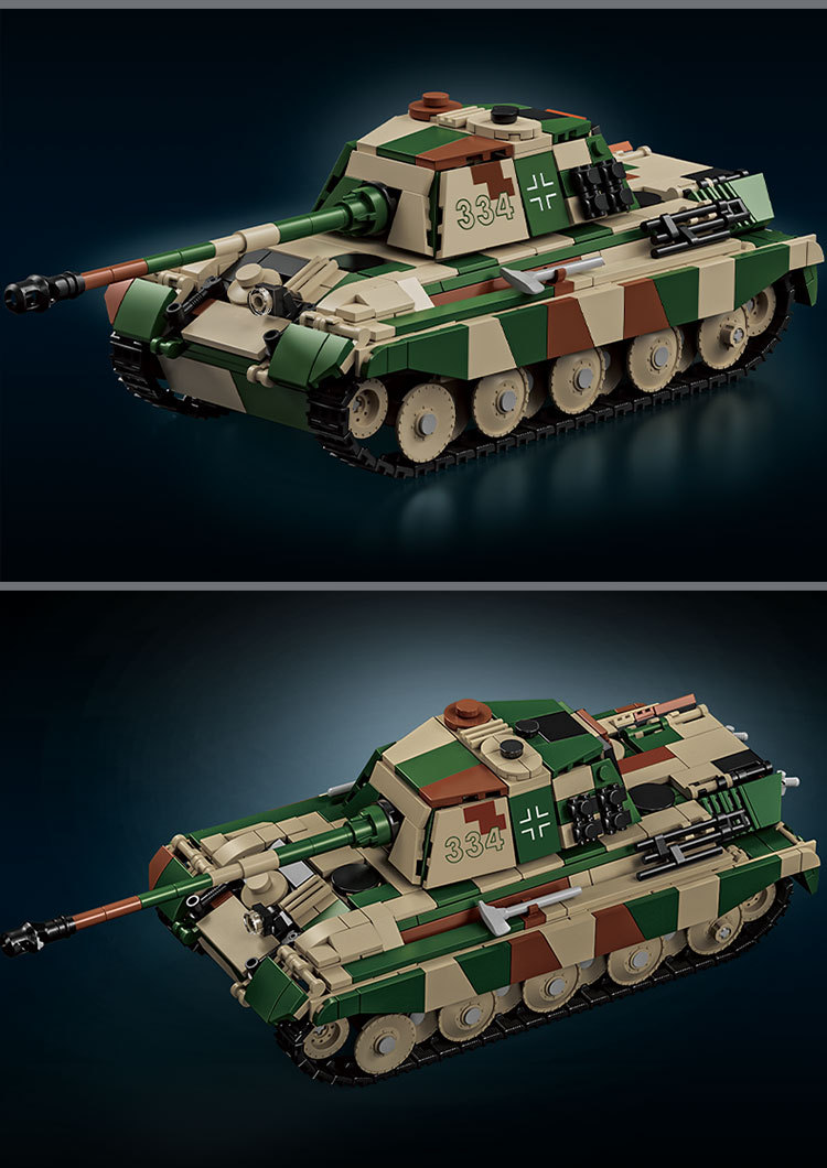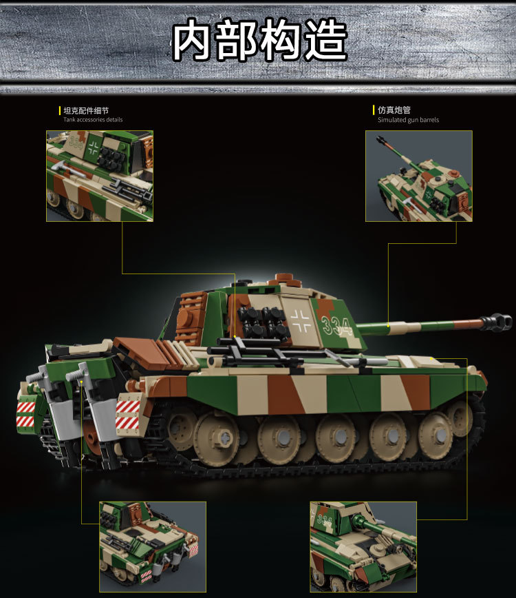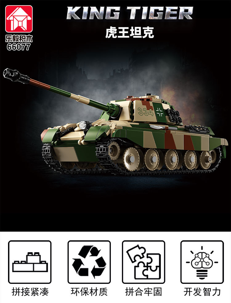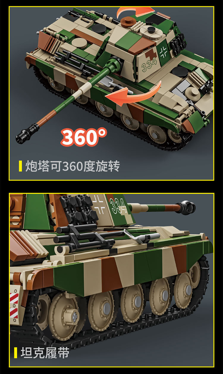二战德国虎式坦克积木重型迷彩装甲车国产拼装军事模型男孩玩具