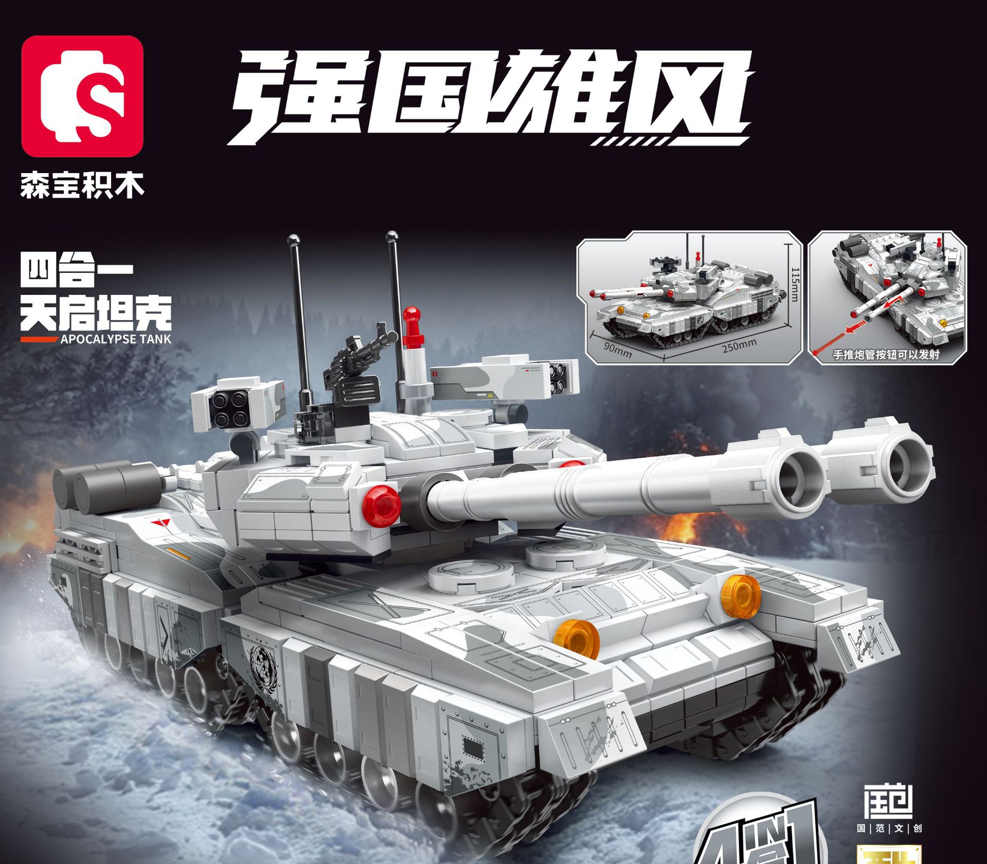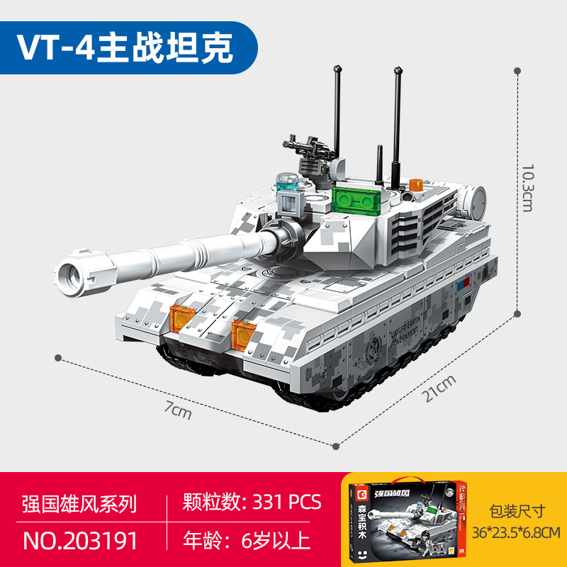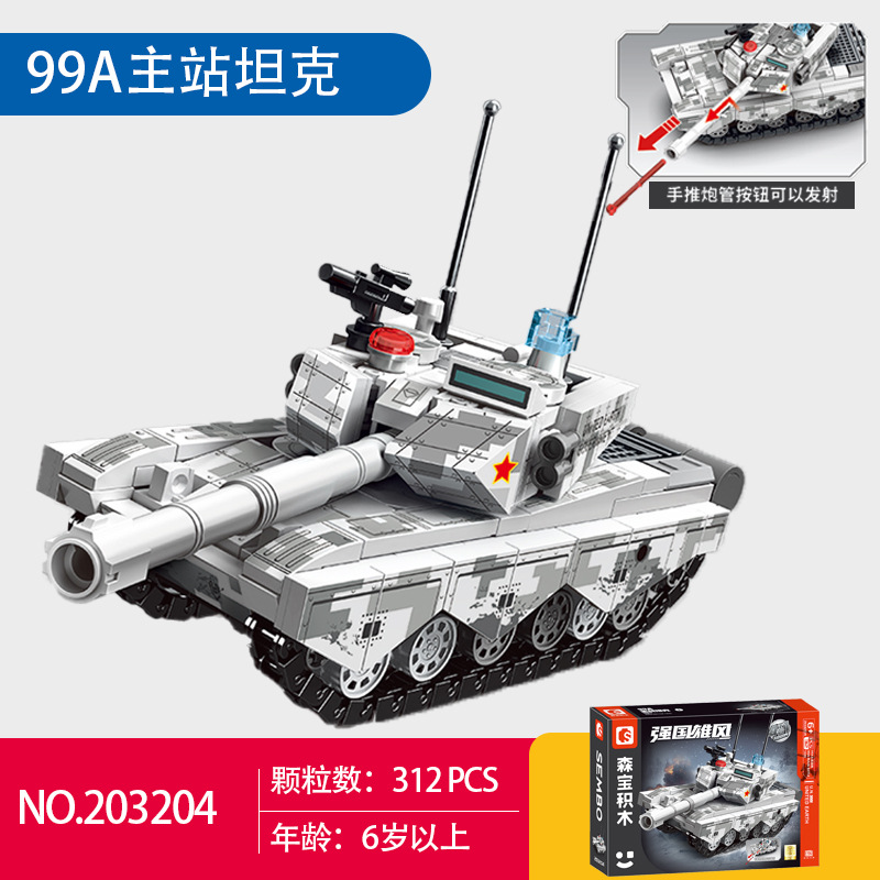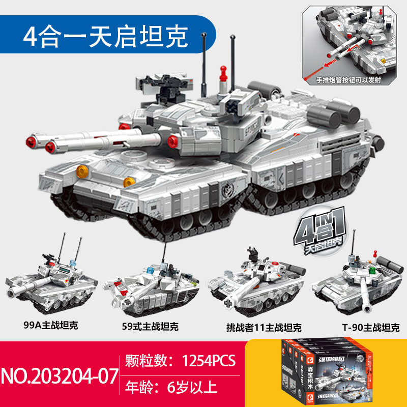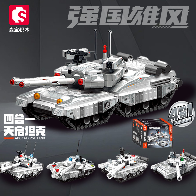 森宝积木99A式主战坦克合体天启坦克模型益智拼装拼图小颗粒玩具