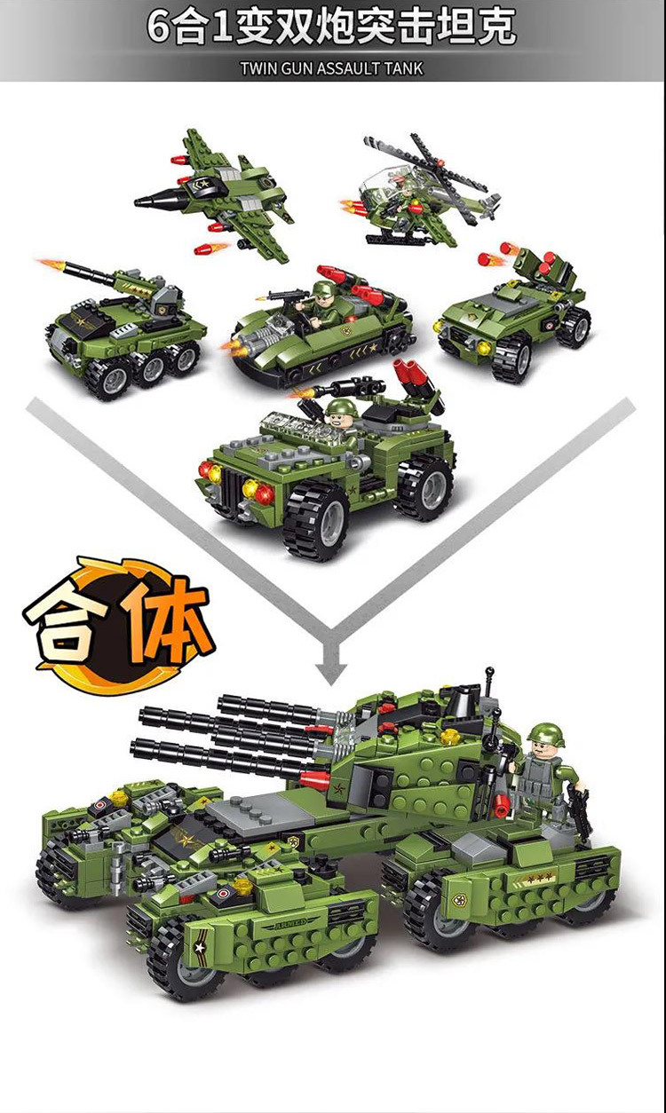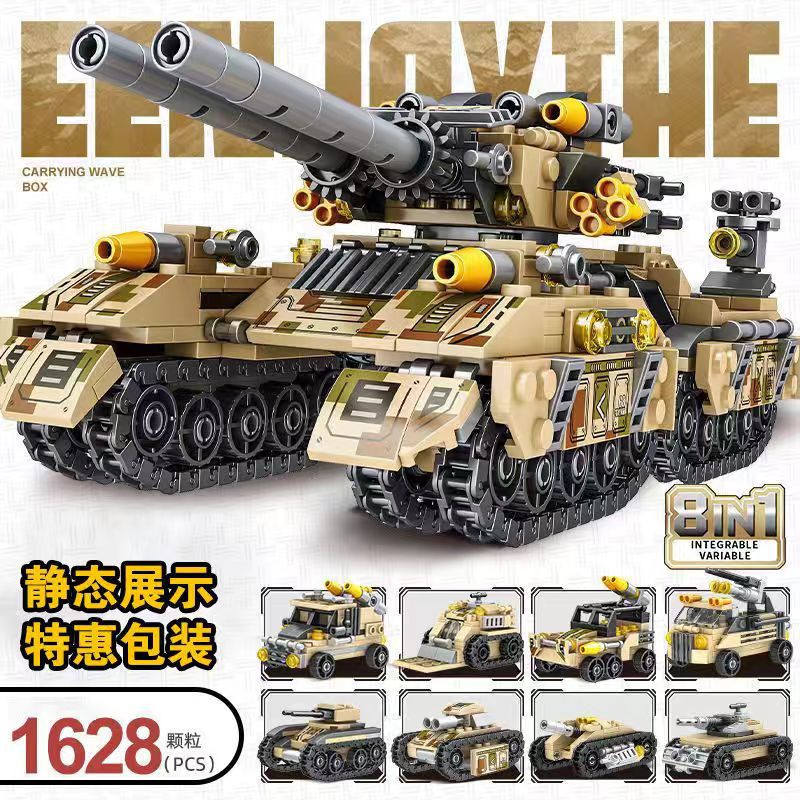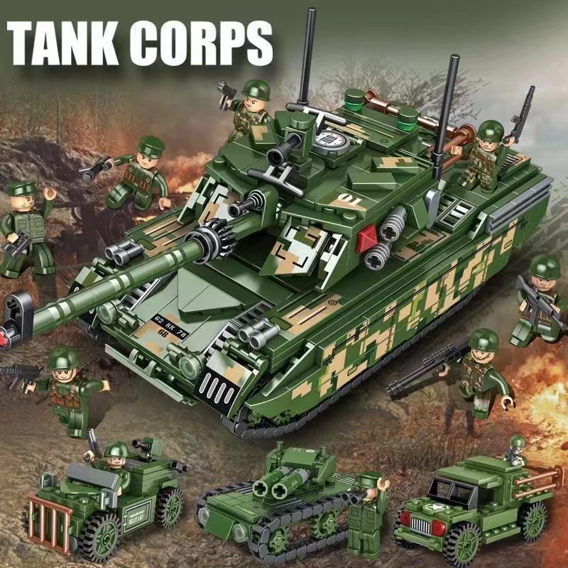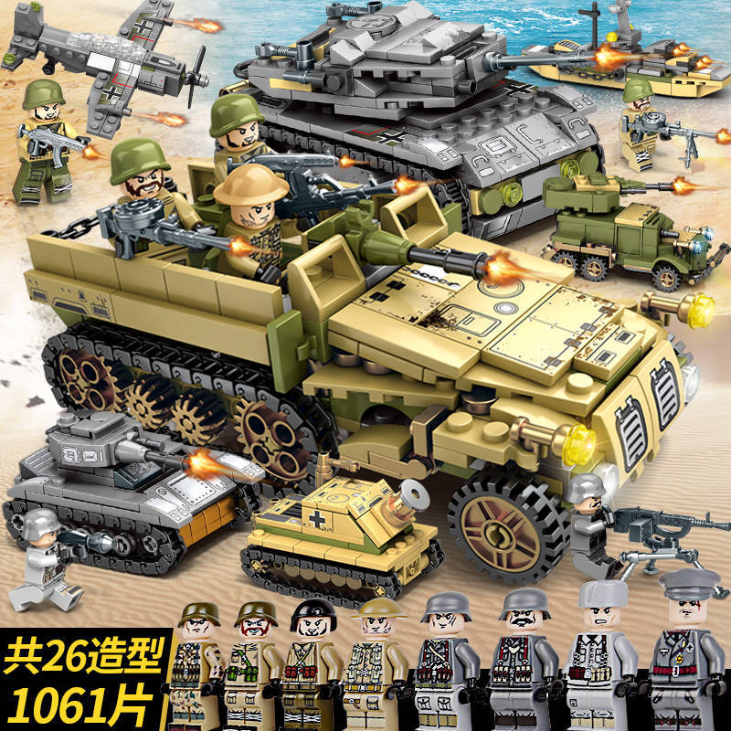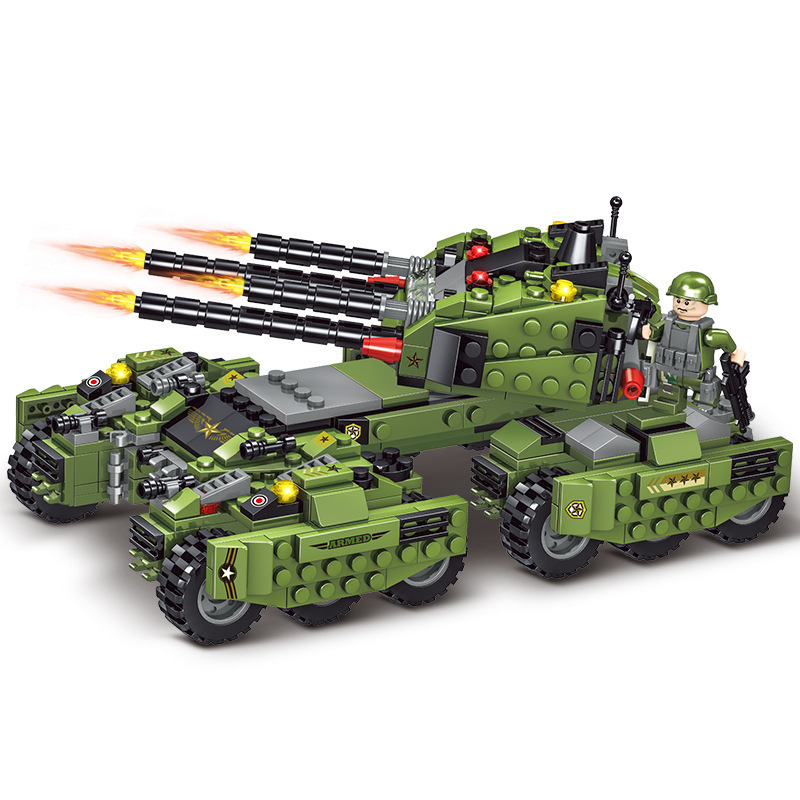 兼容乐高积木军事四炮坦克装甲车男孩拼装儿童玩具
