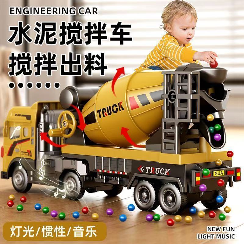 儿童仿真大号惯性拖车工程车模型玩具车宝宝搅拌车男孩礼物水泥车