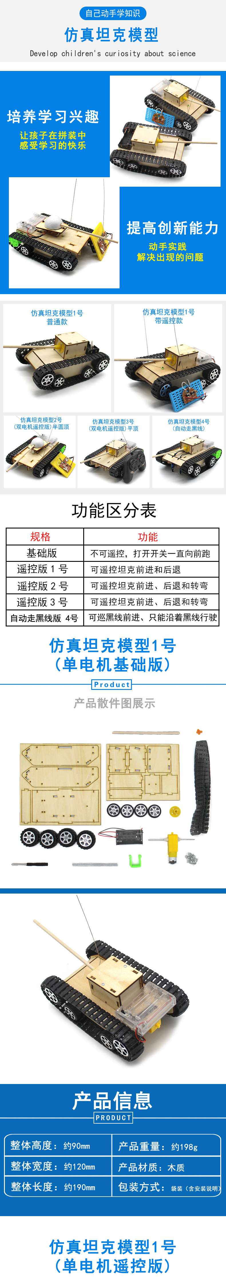 木质电动仿真坦克diy教具小学生科技拼装模型自制履带坦克车教具