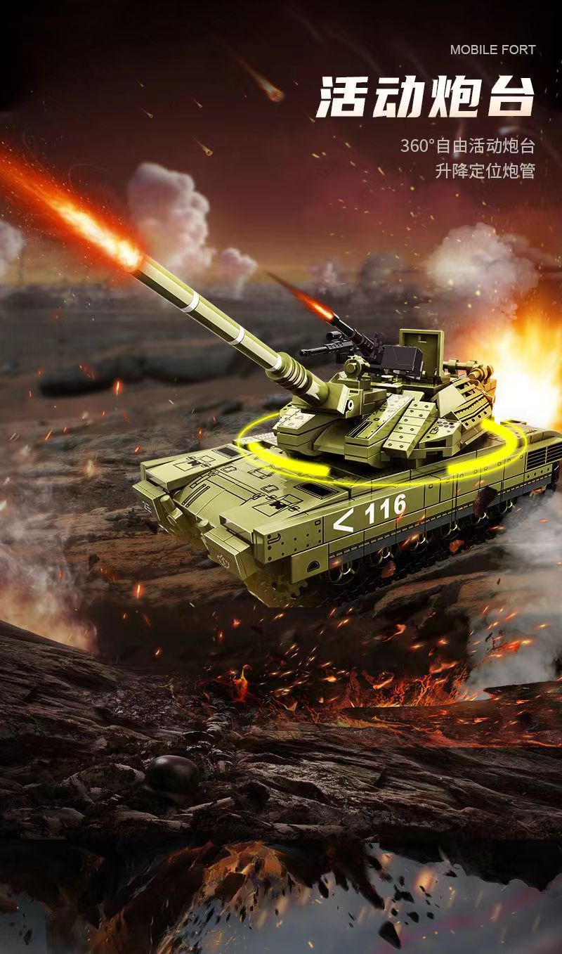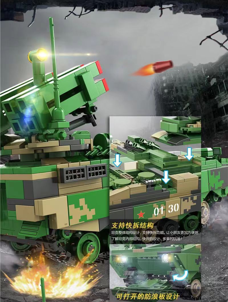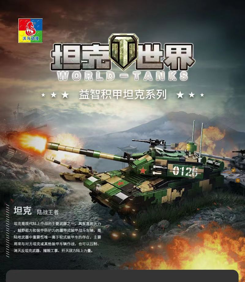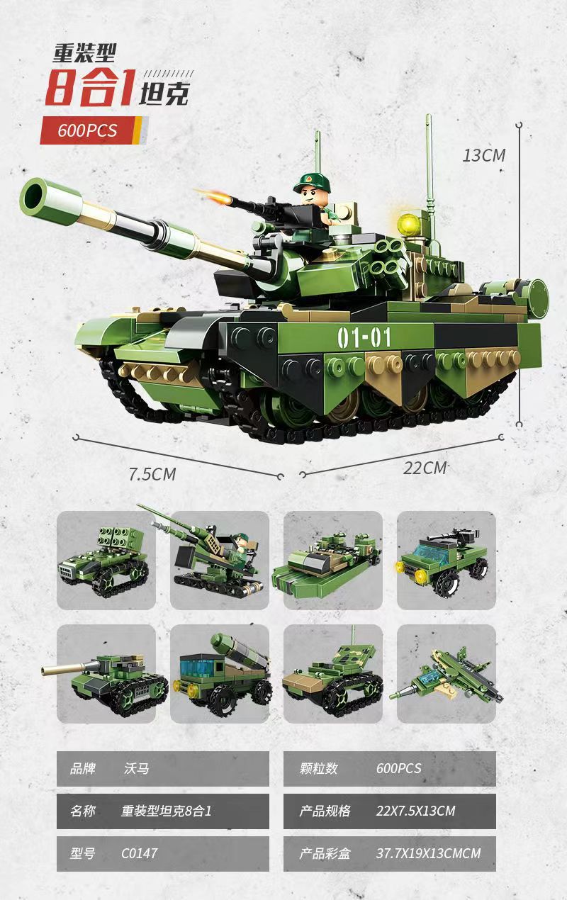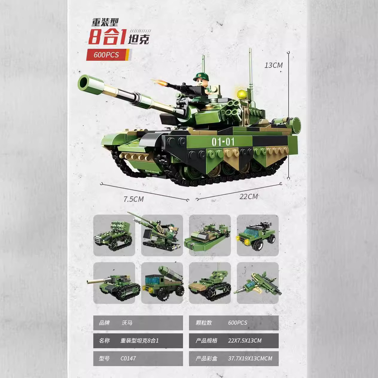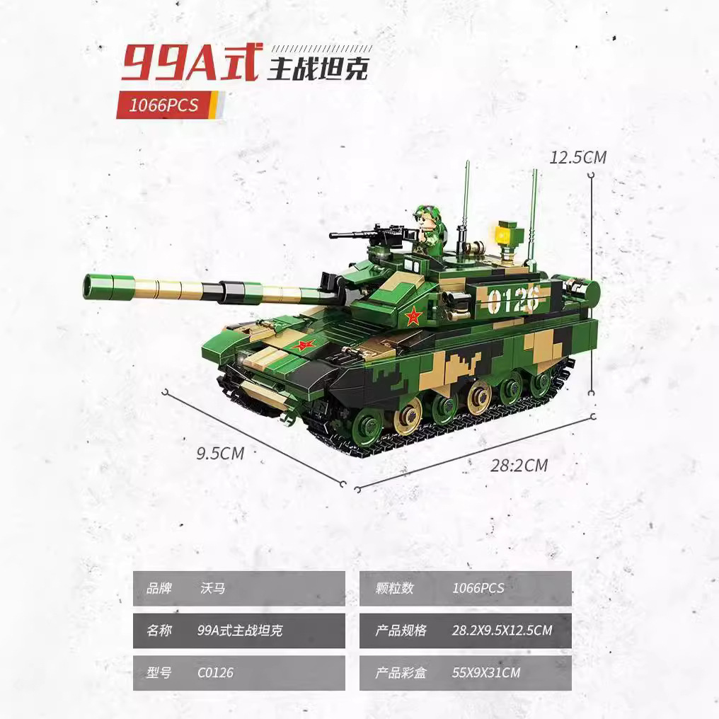沃马积木八合一99a主战坦克益智拼装玩具装甲车男孩系列