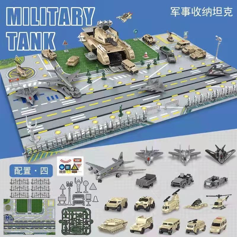 坦克玩具车战争模拟军事基地可收纳套装男孩儿童组装益智模型玩具