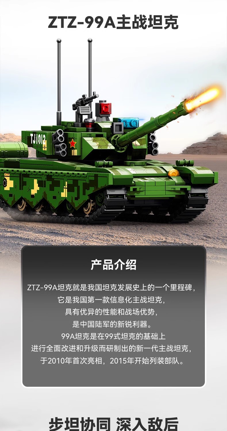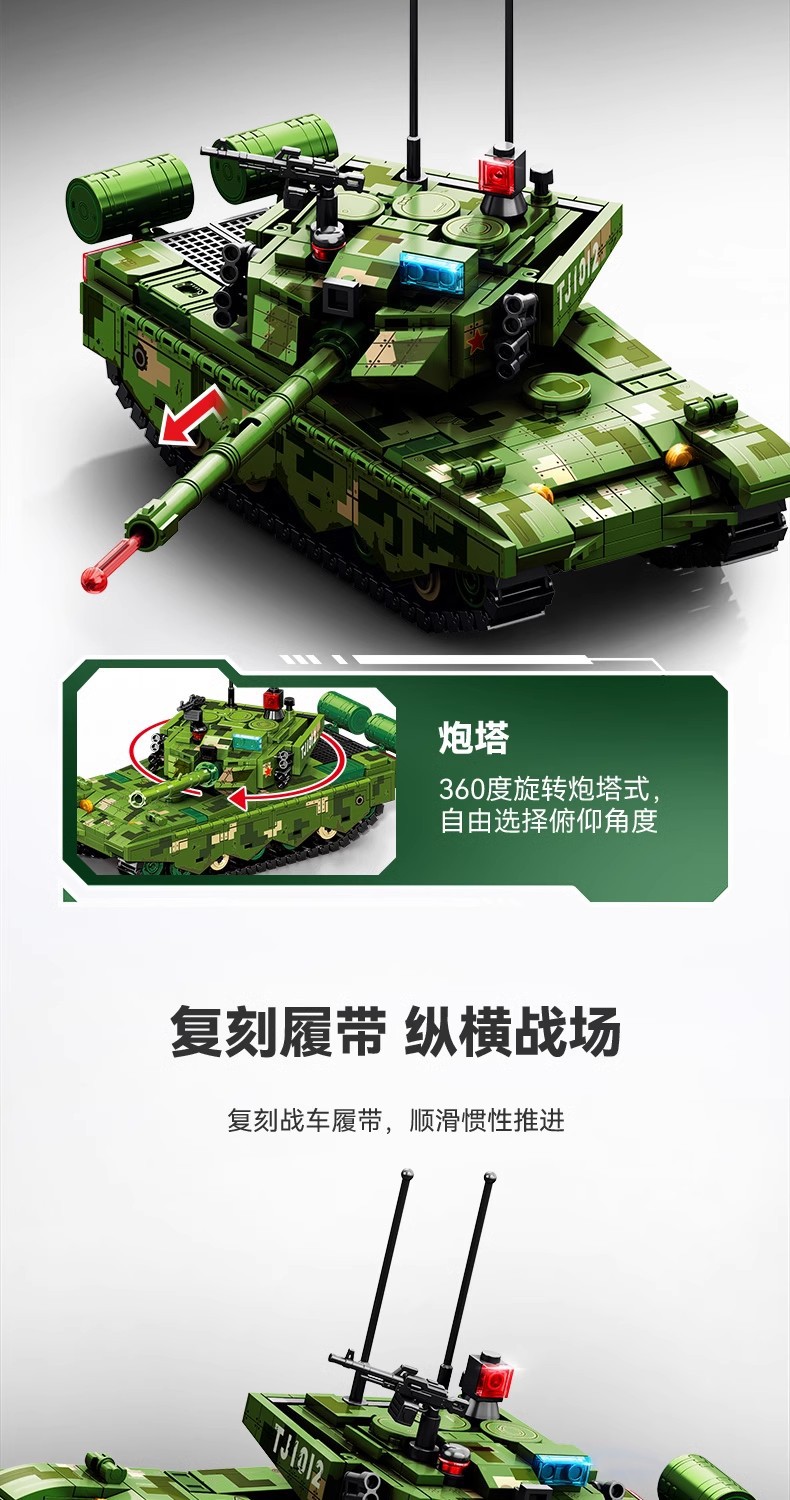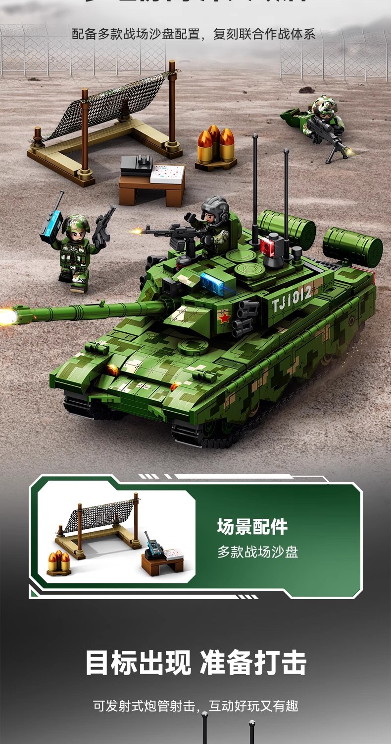 森宝军事ZTZ-99A主战坦克组装模型男孩小颗粒拼装积木玩具