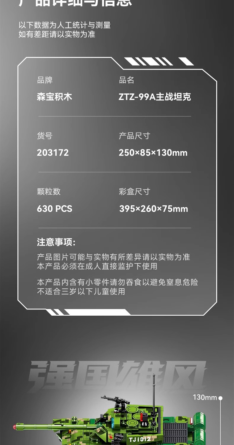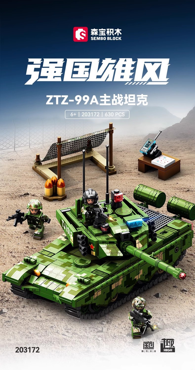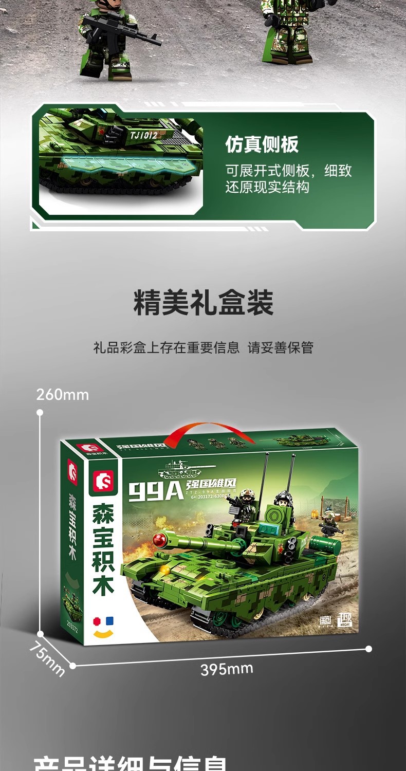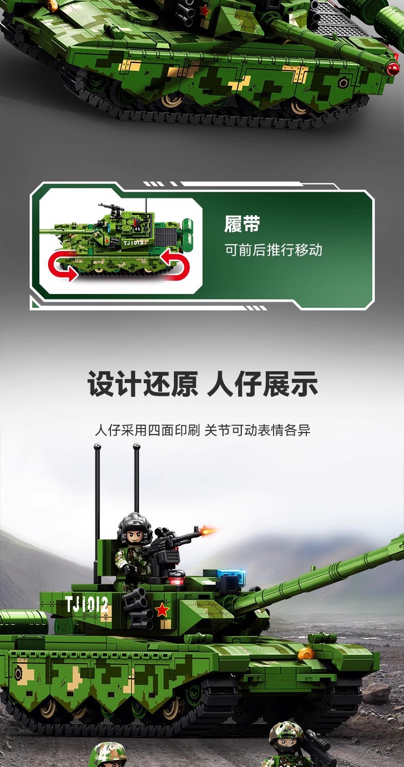 森宝军事ZTZ-99A主战坦克组装模型男孩小颗粒拼装积木玩具