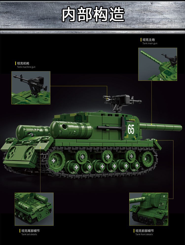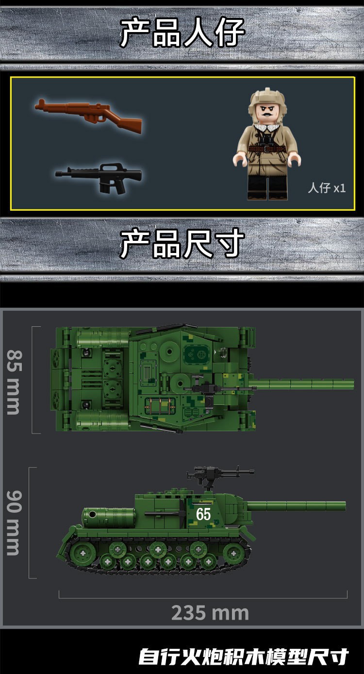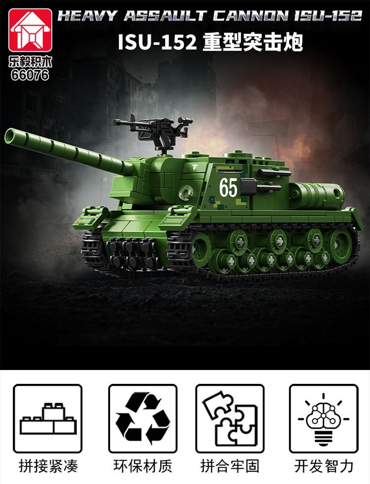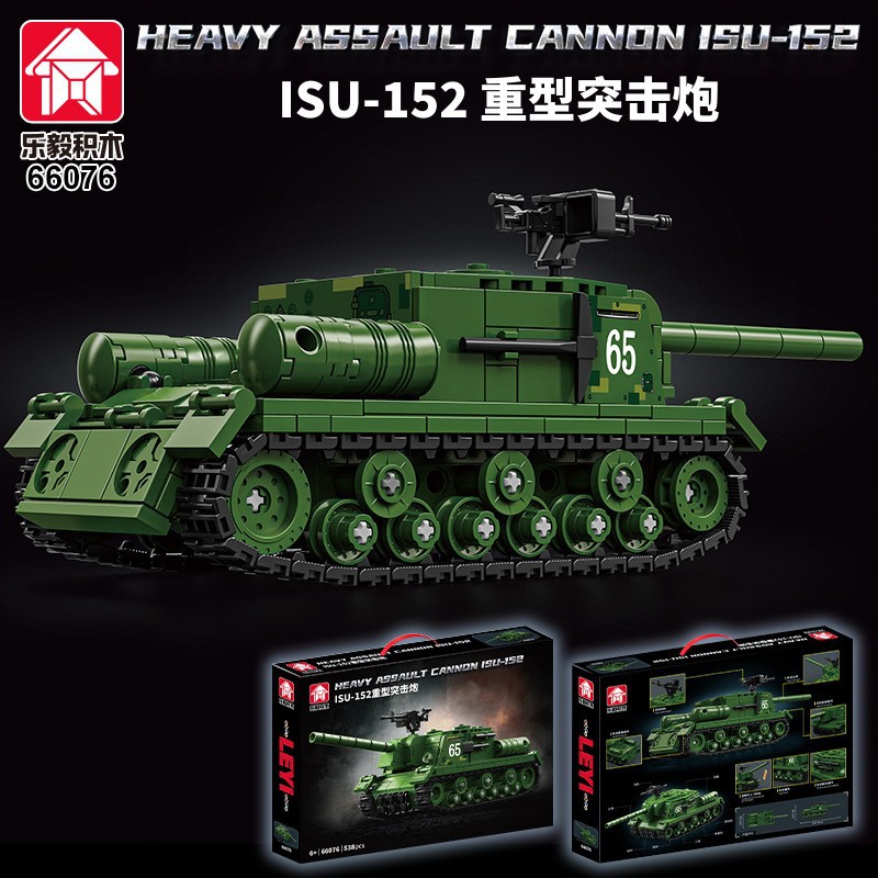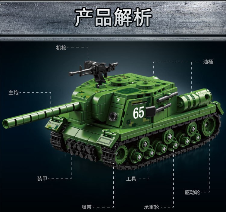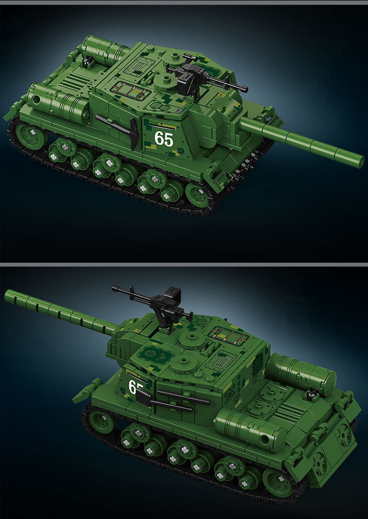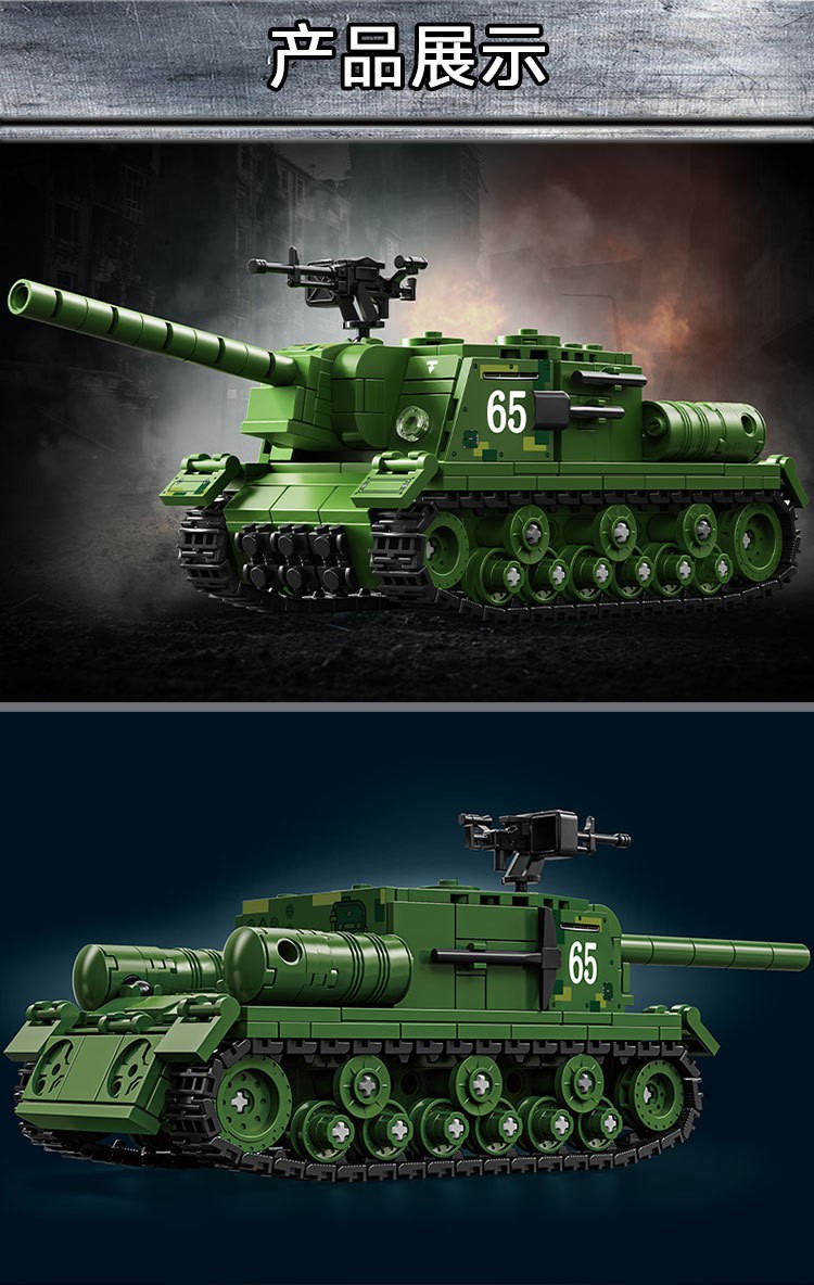 二战军事坦克积木ISU-152突击炮重型装甲车儿童益智玩具机构礼物