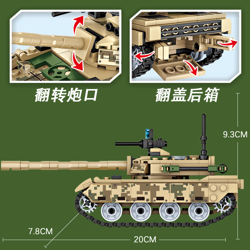 军事坦克VT4主战坦克兼容乐高小颗粒积木拼搭儿童玩具