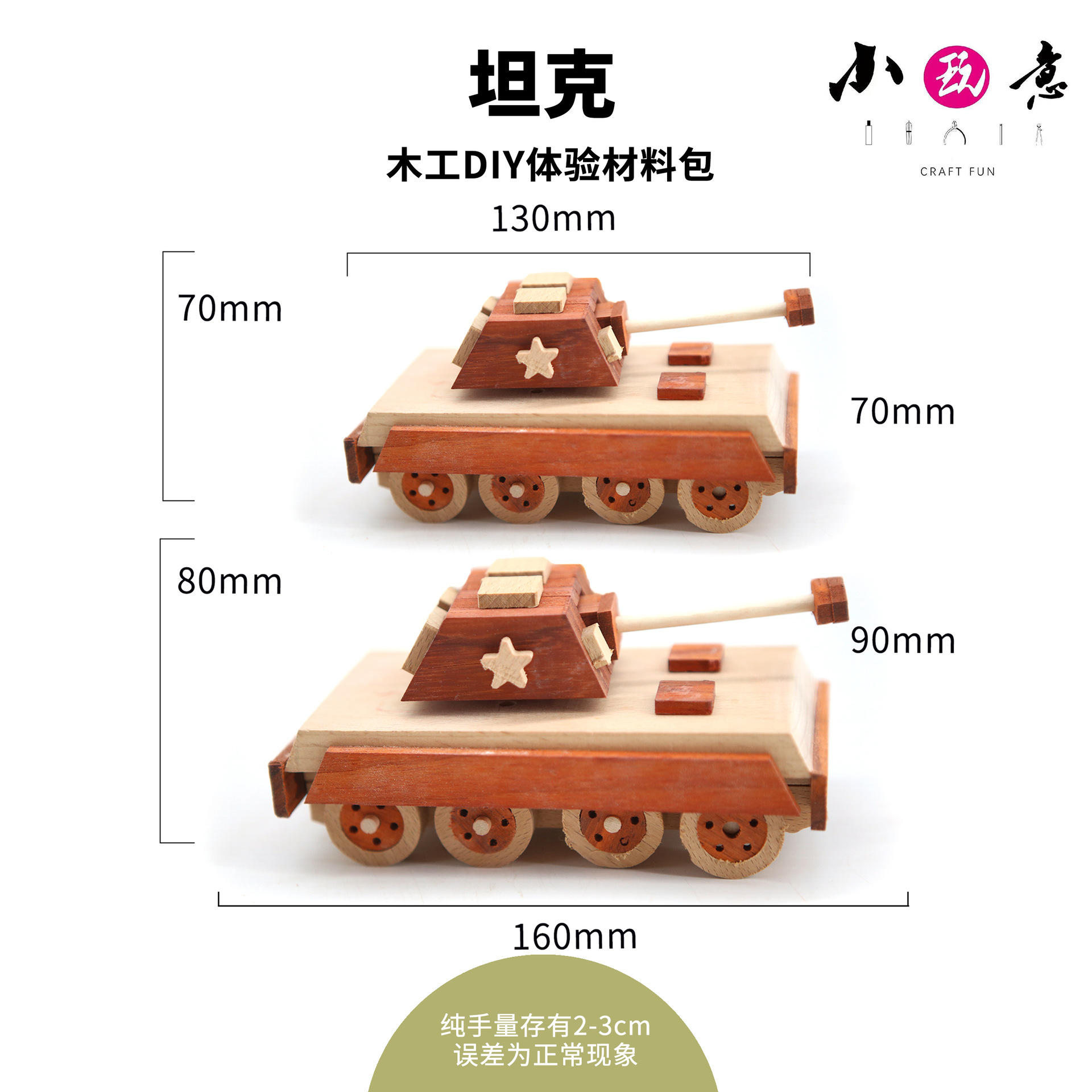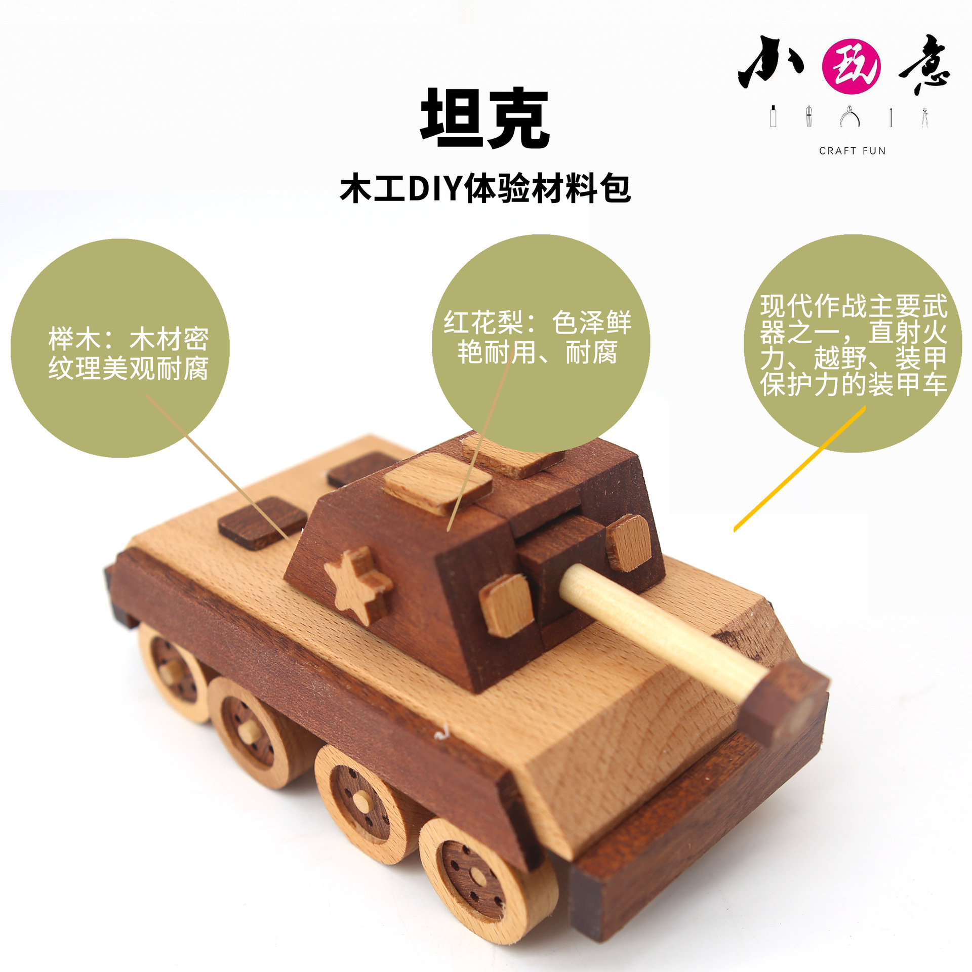 坦克木艺实木拼装DIY玩具模型材料包教培木工课程团建活动创意