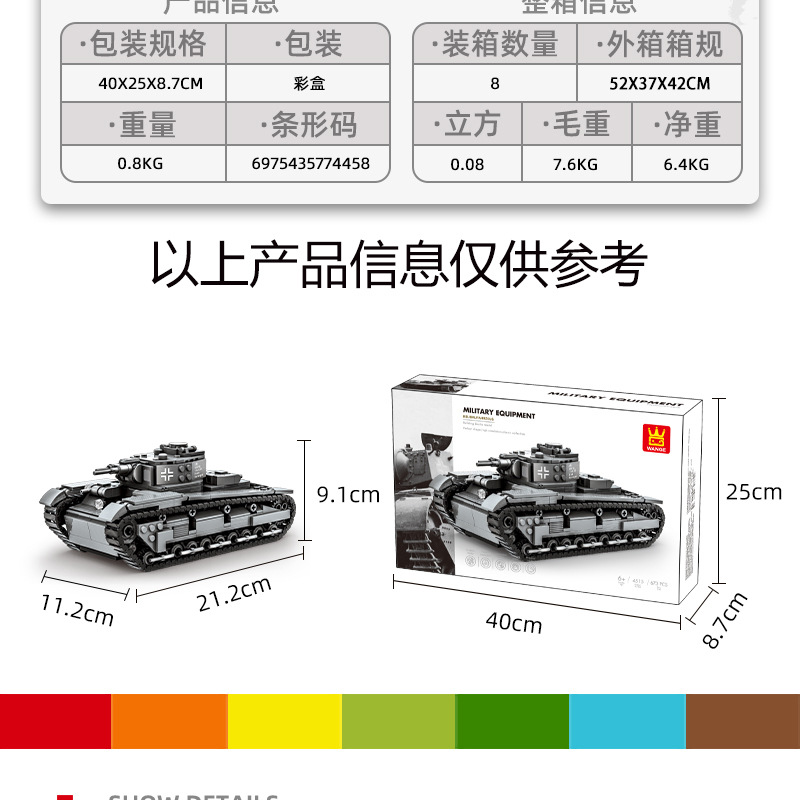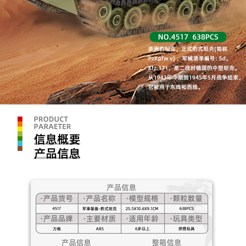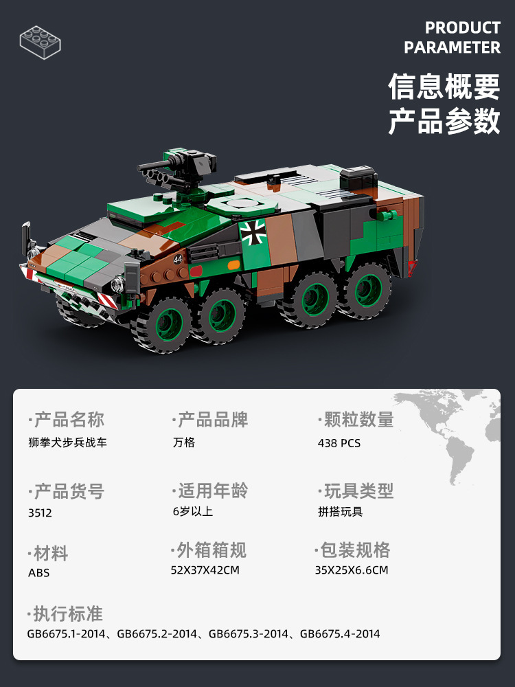 万格3510军事装甲坦克战车拼装小颗粒中国积木益智男女孩跨境玩具
