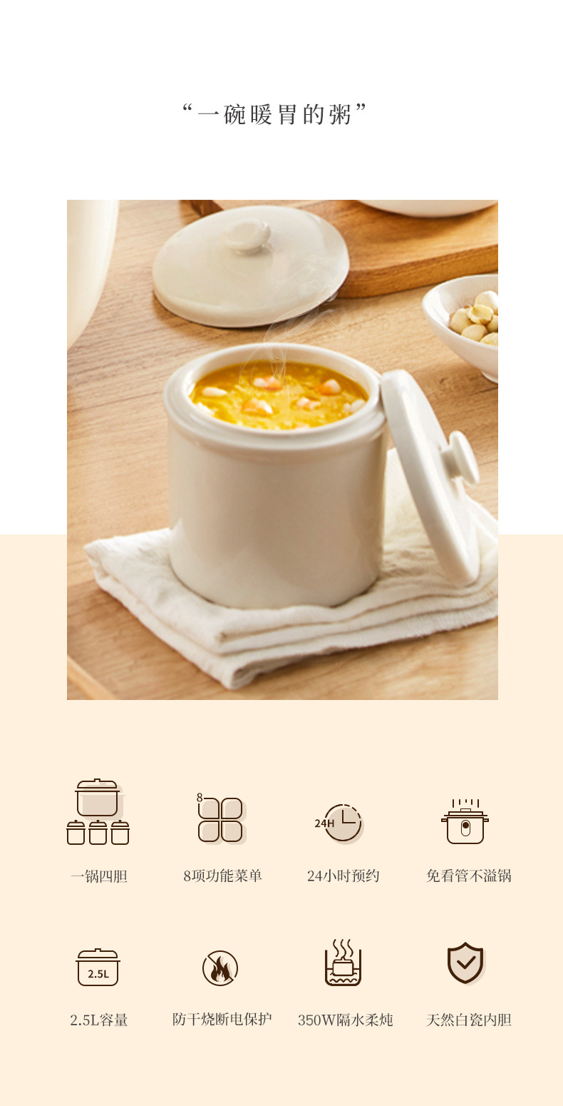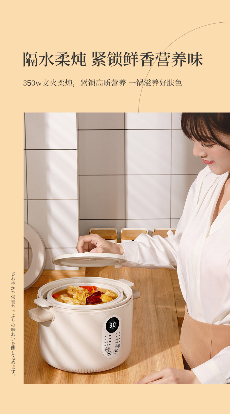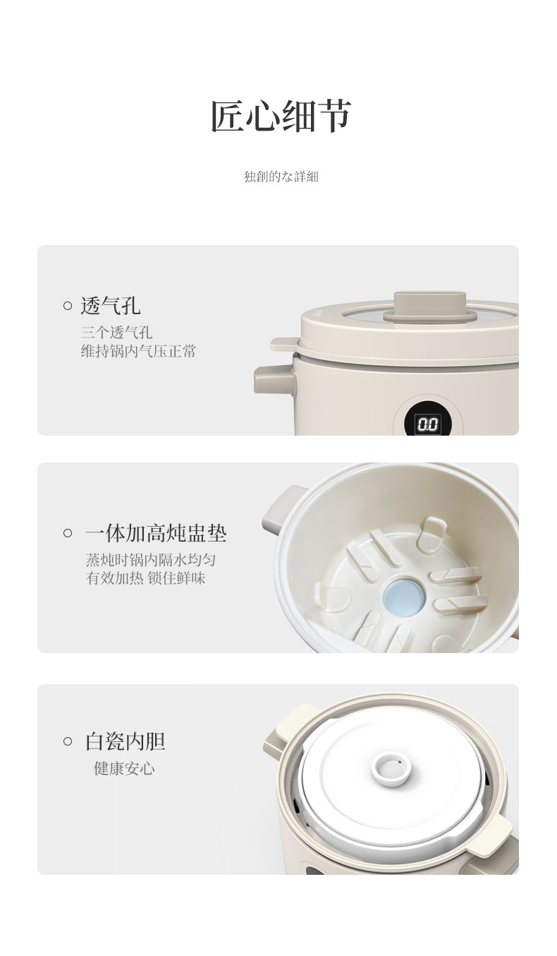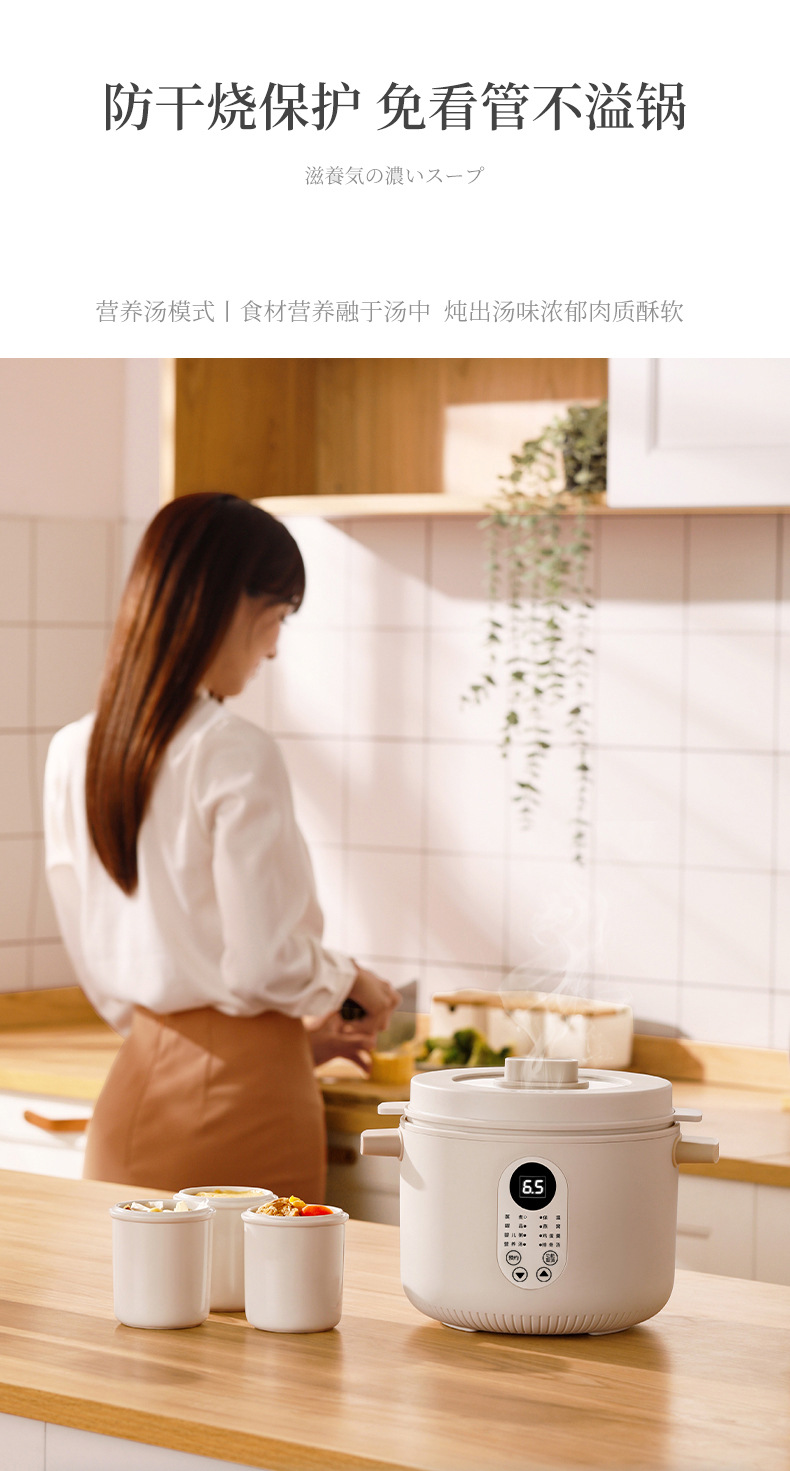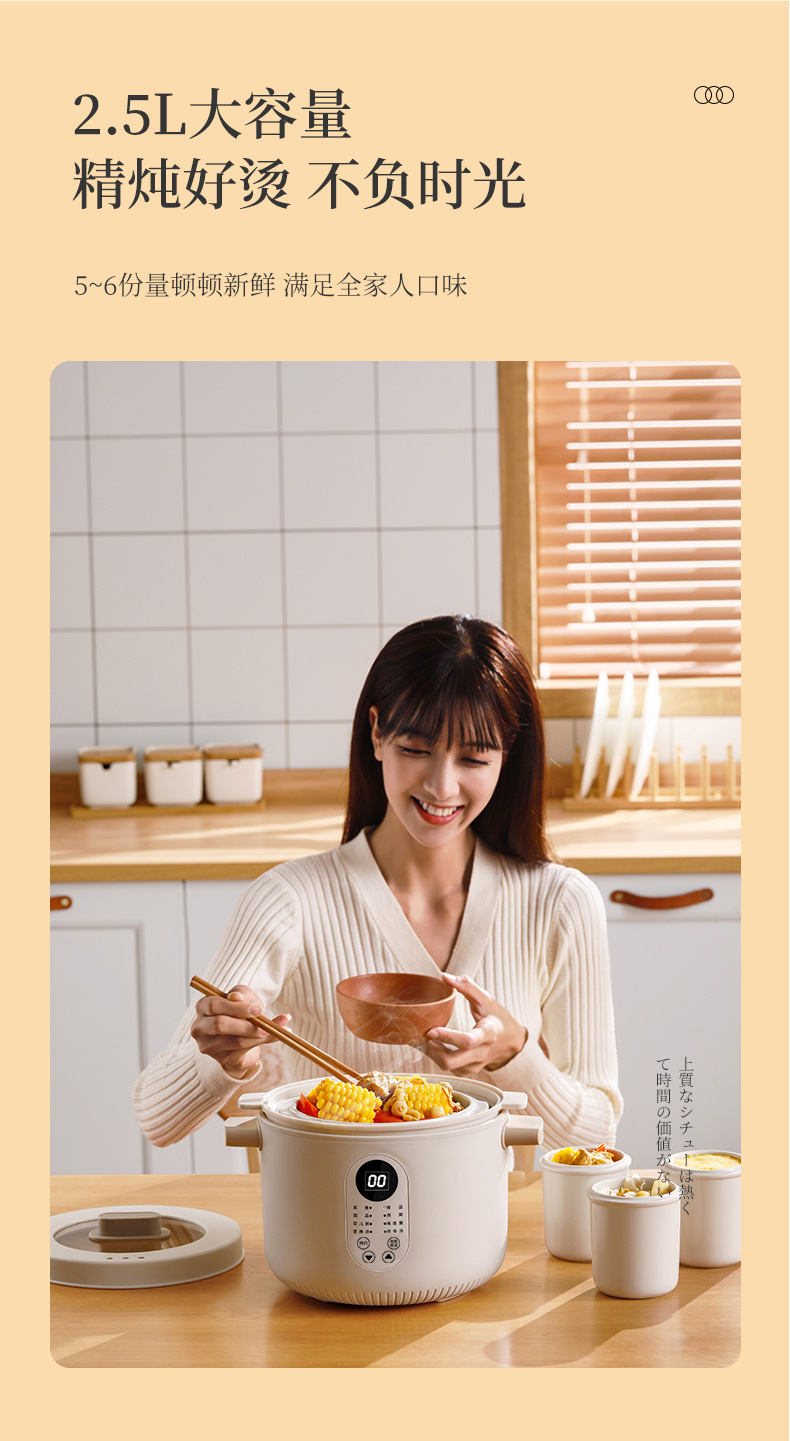 志高隔水炖电炖盅电炖锅煲汤锅陶瓷砂锅煮粥2.5升炖煮内胆大容量