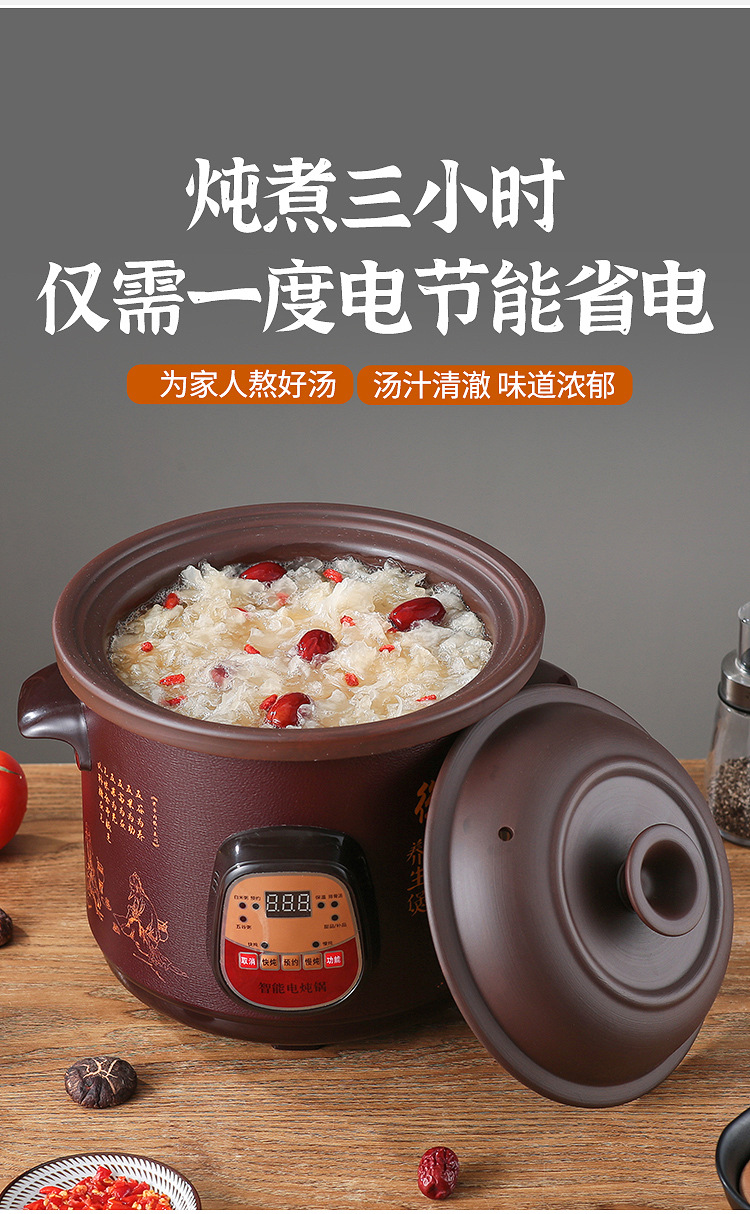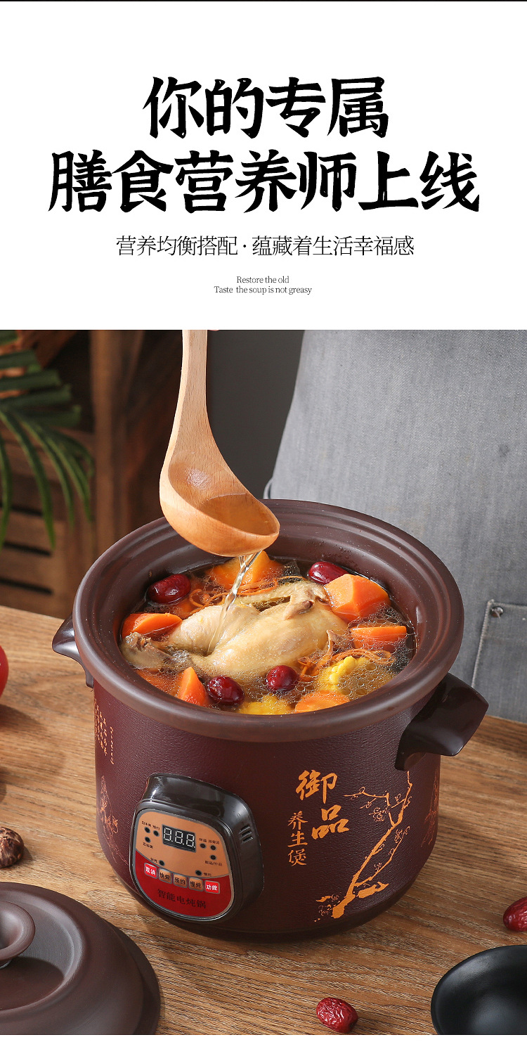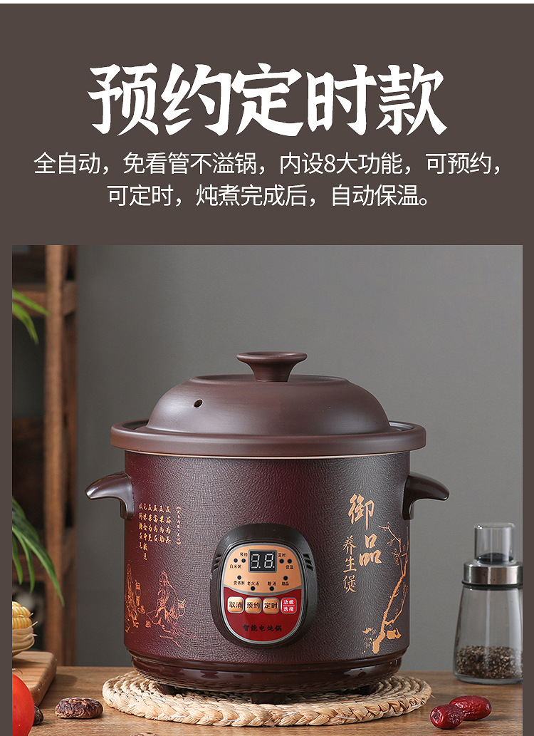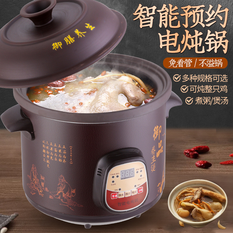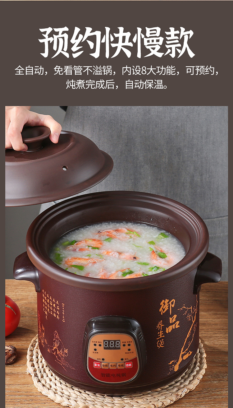 全自动2.5-6L电炖锅陶瓷煲汤沙锅家用熬煮粥神器多功能养生紫
