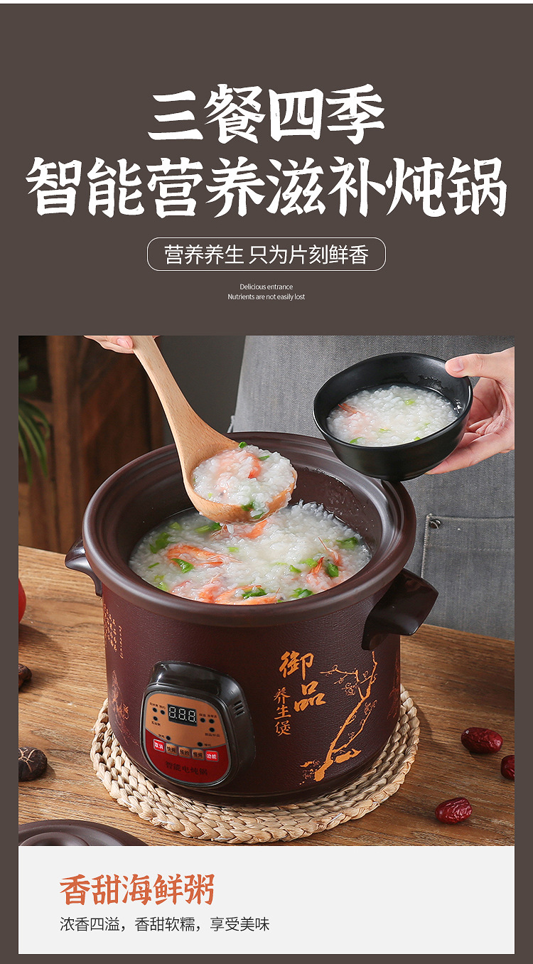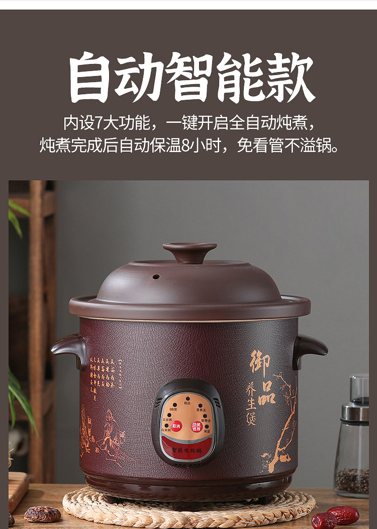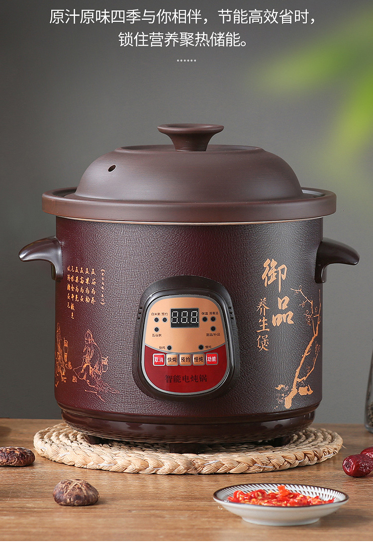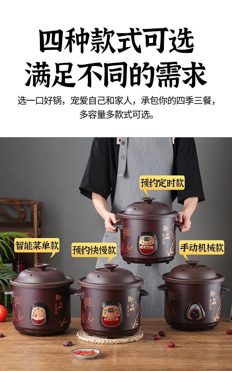 全自动2.5-6L电炖锅陶瓷煲汤沙锅家用熬煮粥神器多功能养生紫