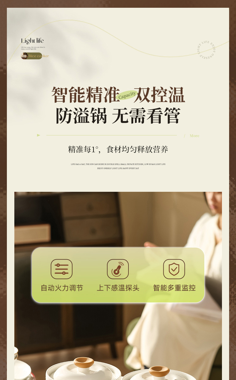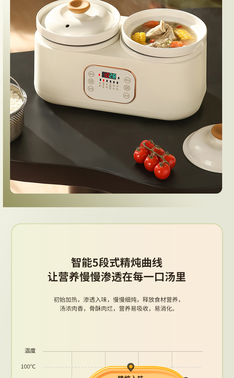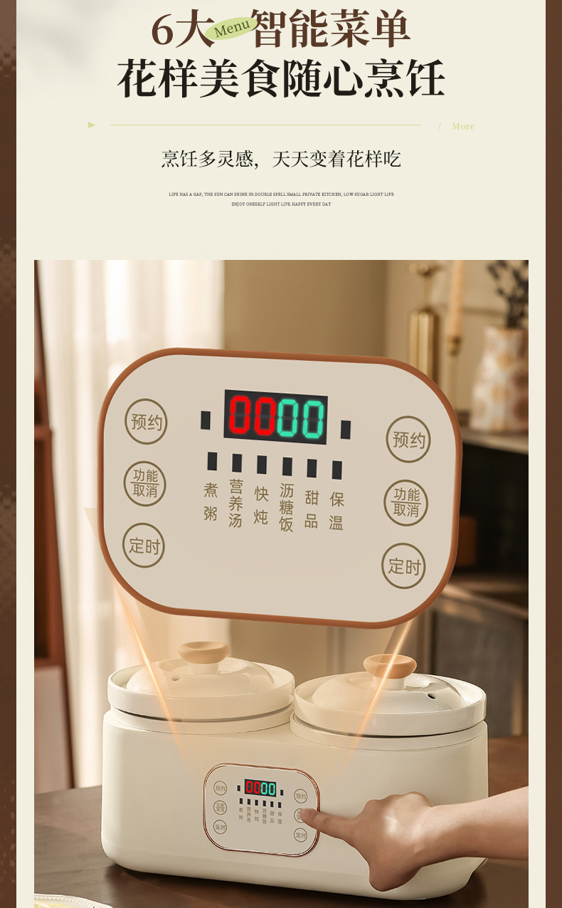 电炖锅陶瓷家用全自动多功能电炒锅煮粥婴儿辅食bb煲汤盅蒸米饭