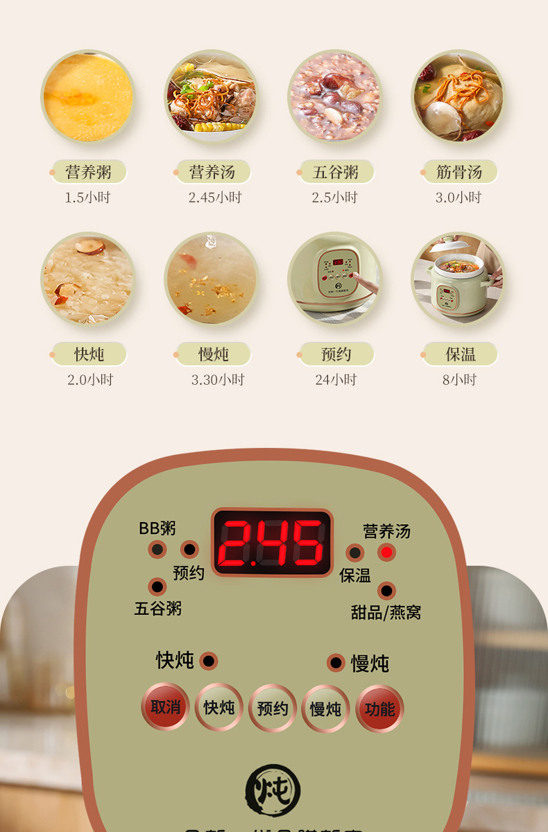电炖锅全自动家用小型白瓷养生锅熬煮粥电炖盅砂锅迷你煲汤锅