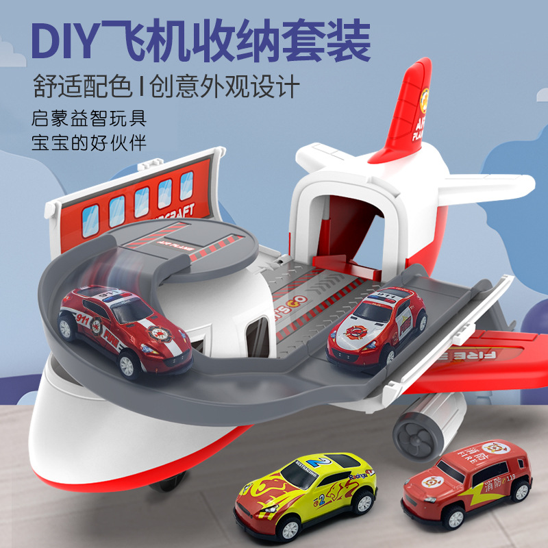变形儿童玩具飞机惯性回力收纳益智合金车男孩多功能轨道滑梯滑道